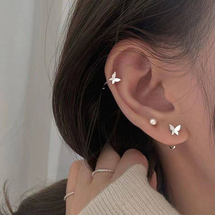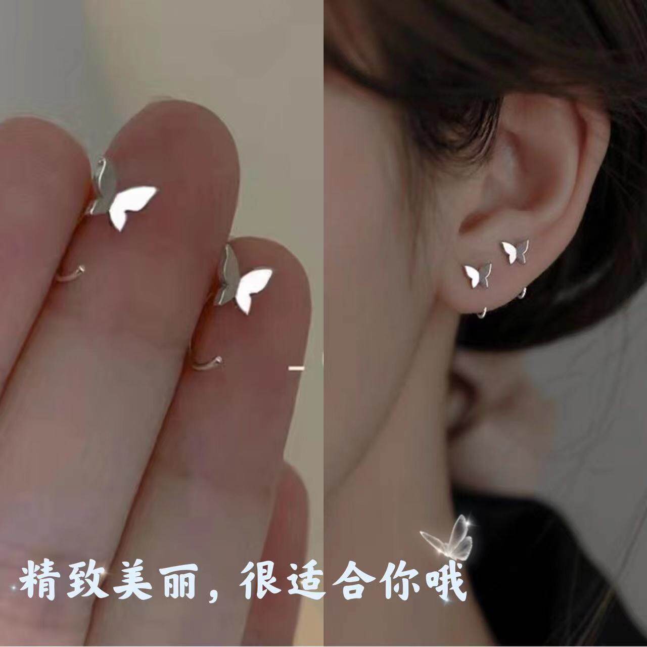 养耳洞小蝴蝶耳钉ins风耳钩简约小巧精致高级感耳饰女2023年新款