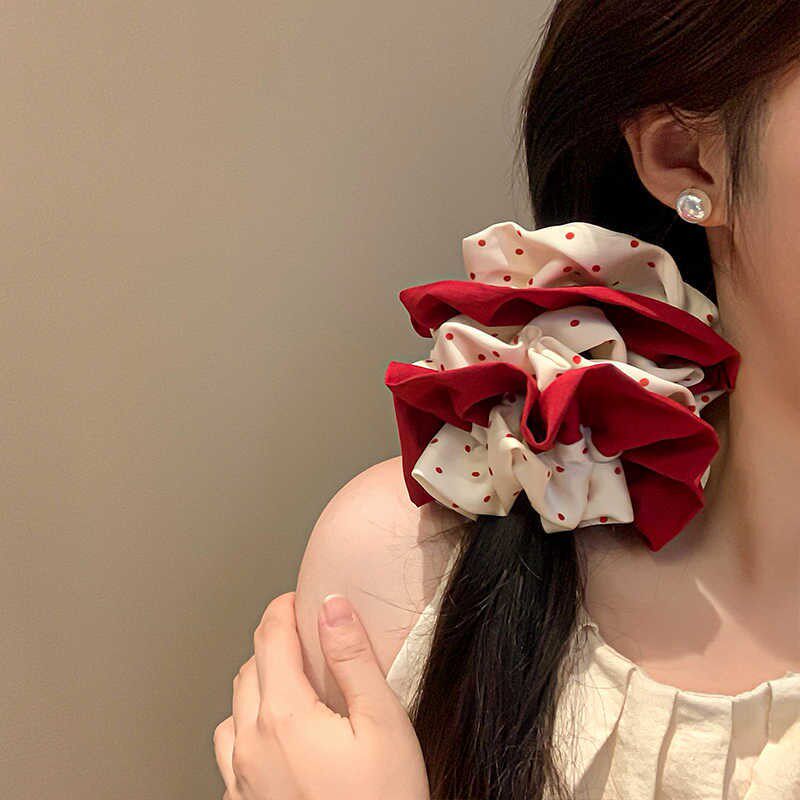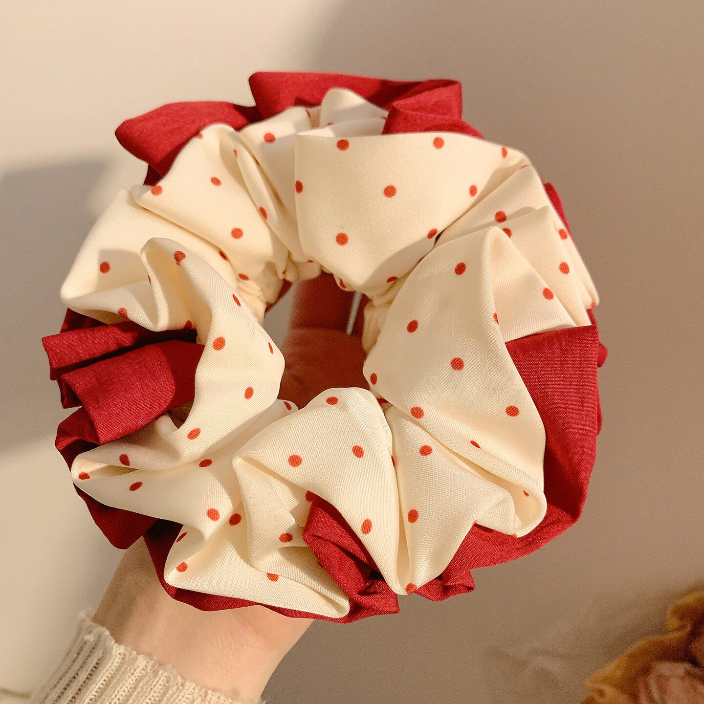 韩系波点大肠发圈女高级感超大扎头发丸子头发绳洋气时尚皮筋发饰