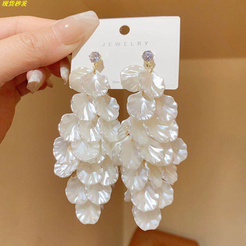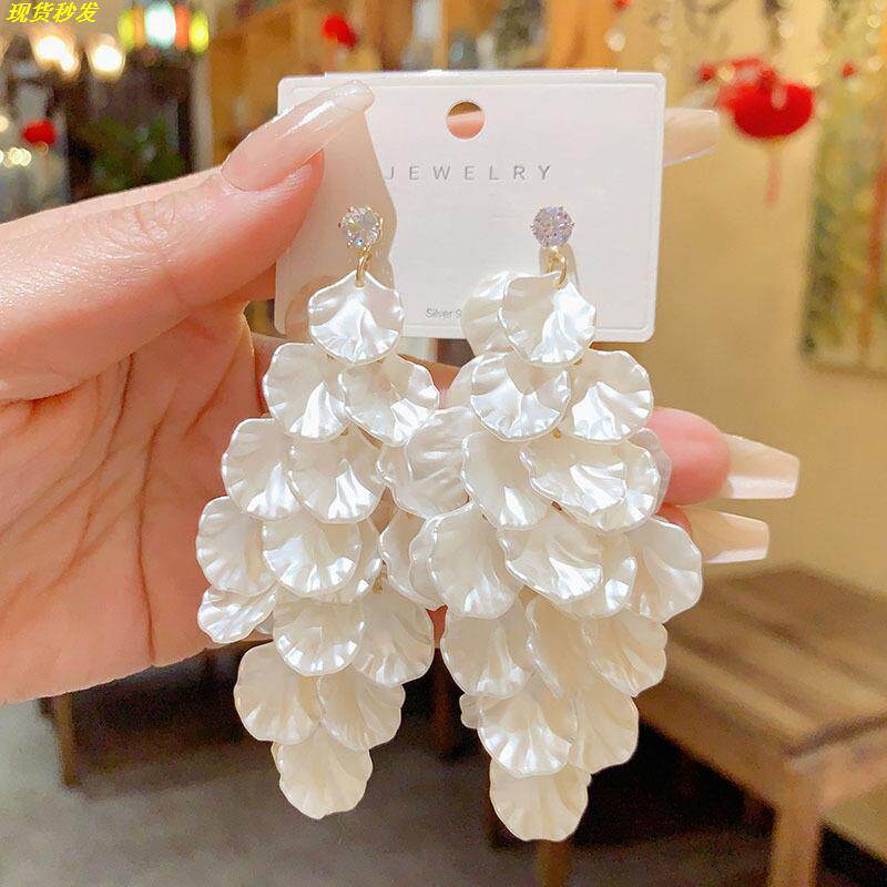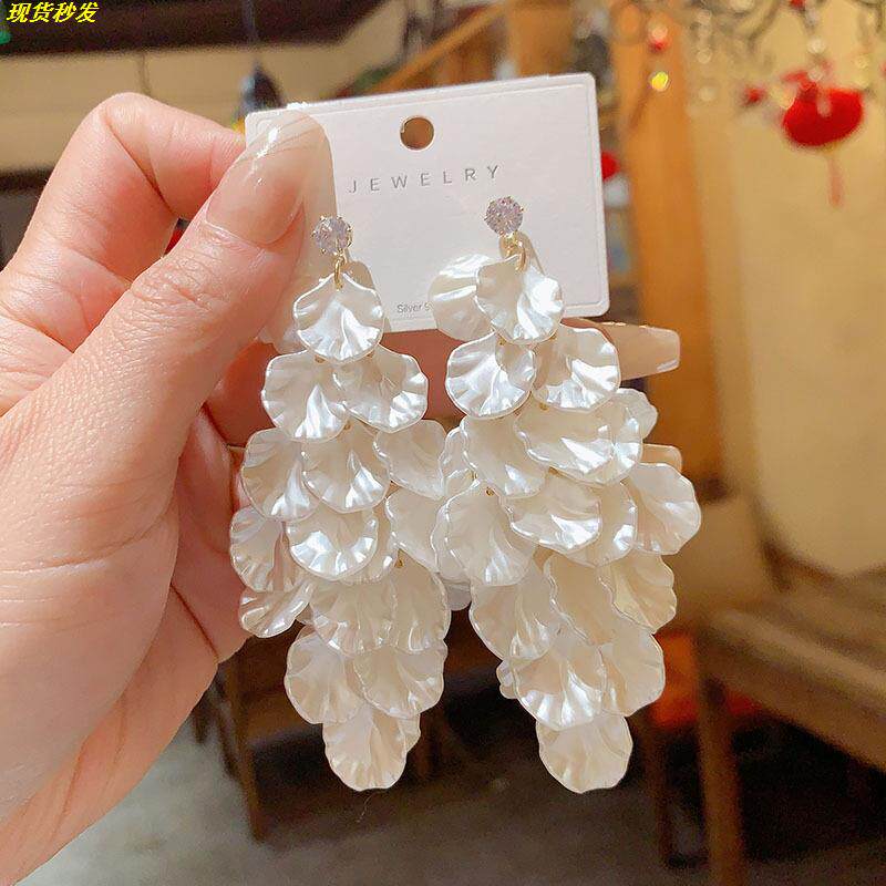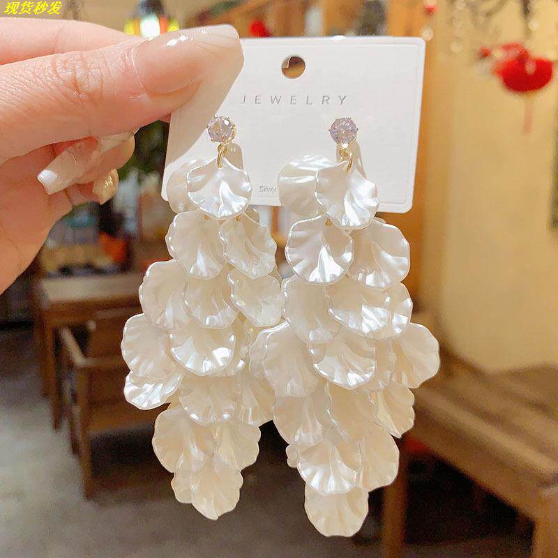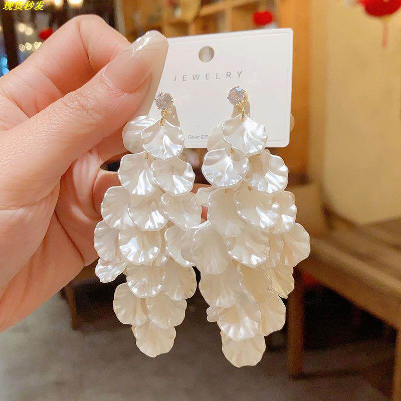 正品奥特莱斯撤柜限时捡漏大气夸张长款花瓣耳环999纯银针耳钉环