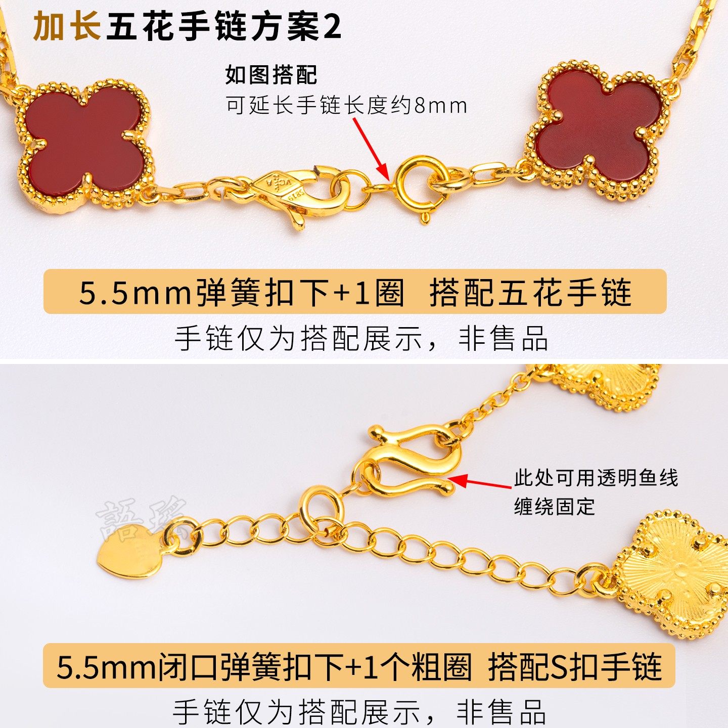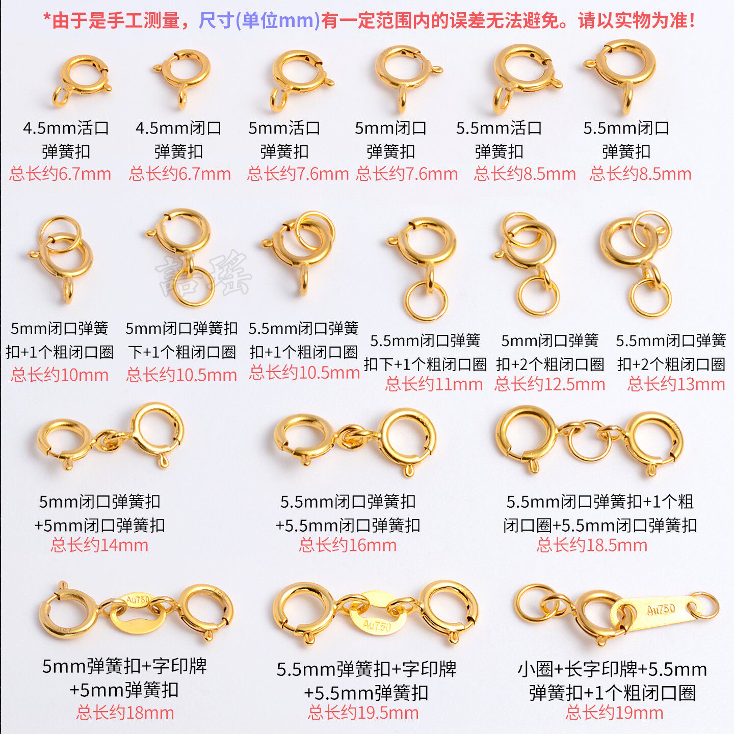 18k金弹簧扣五花手链调节扣延长链黄金项链m扣防掉龙虾s连接扣头