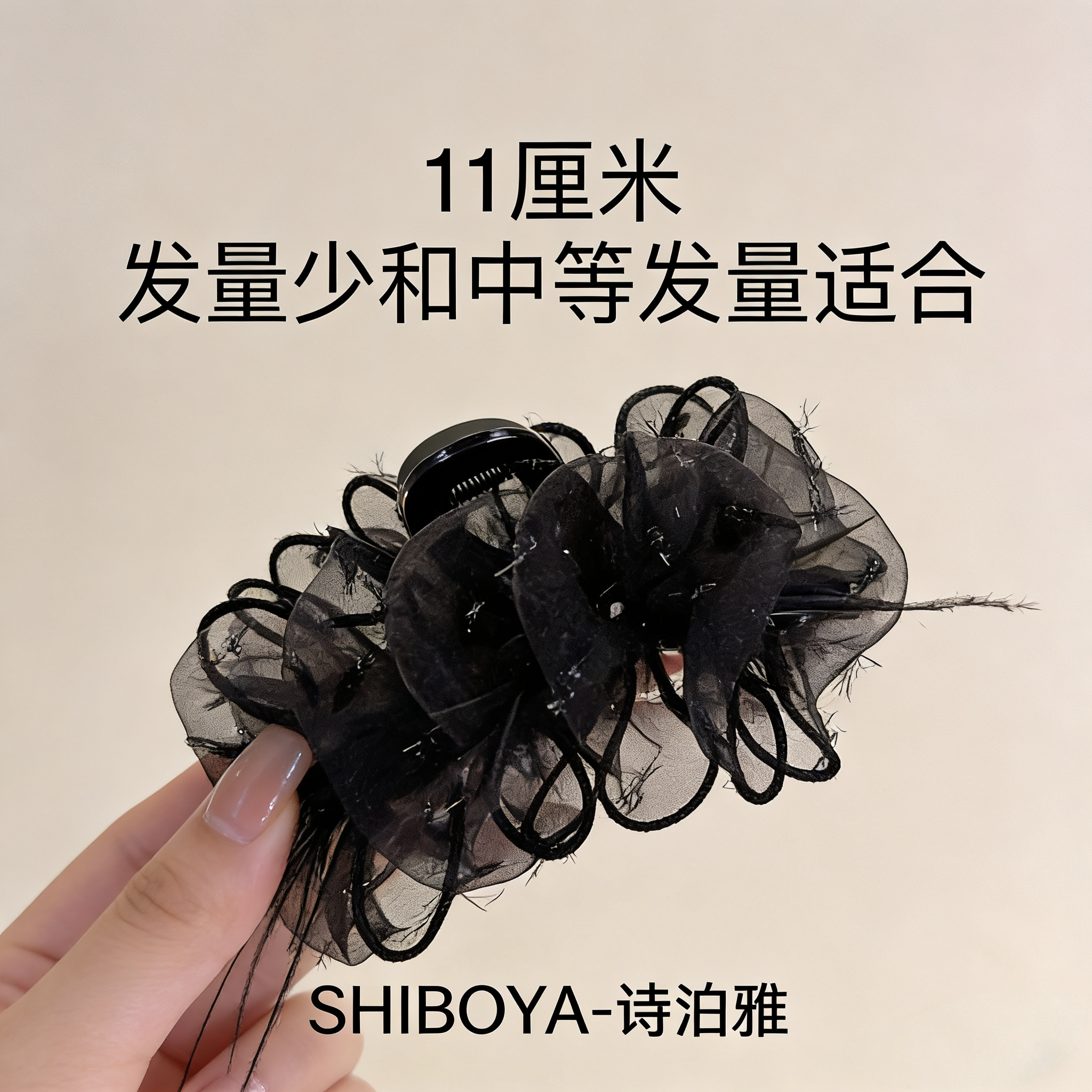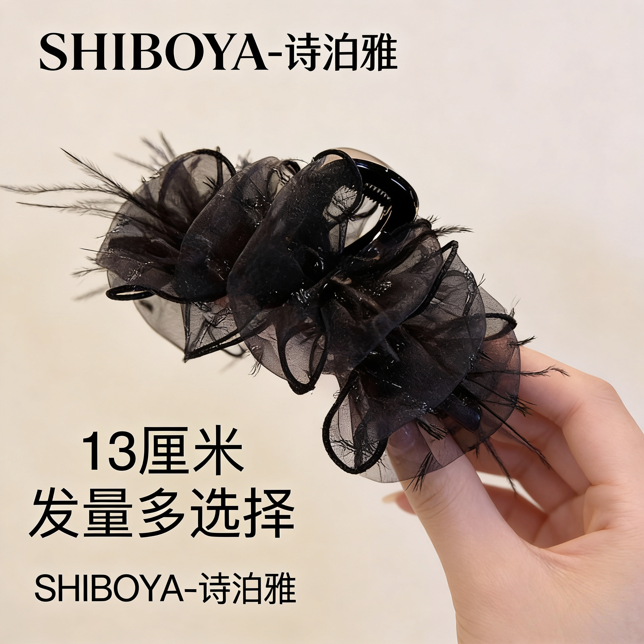 诗泊雅 羽蝶漫舞·轻奢网纱羽毛盘发抓夹