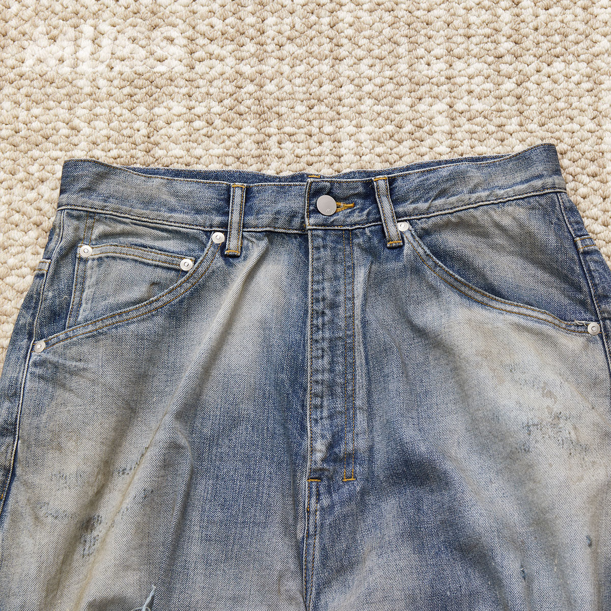 现货 ANCELLM DAMAGE 5P PANTS 日产破坏做旧阔腿牛仔裤 25SS