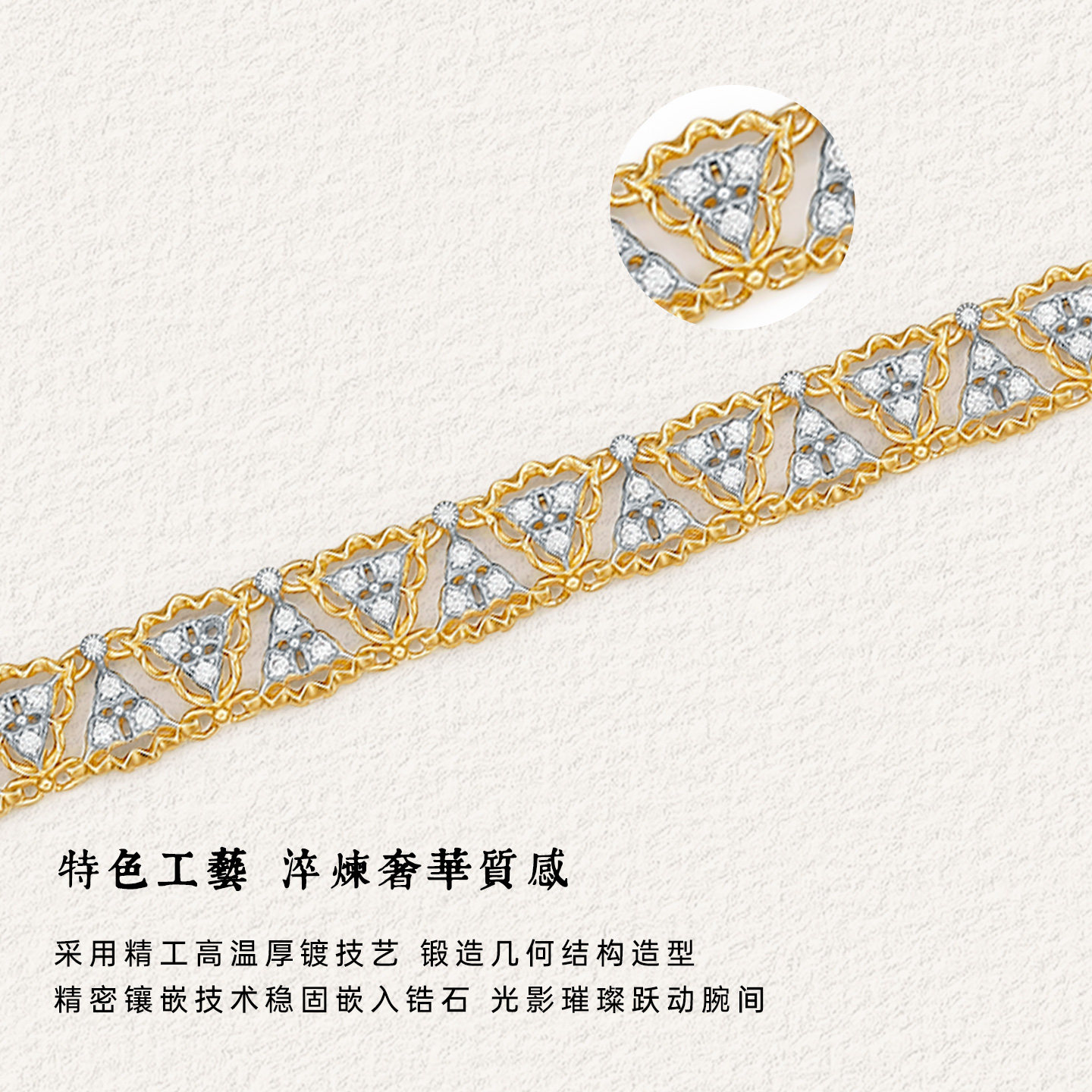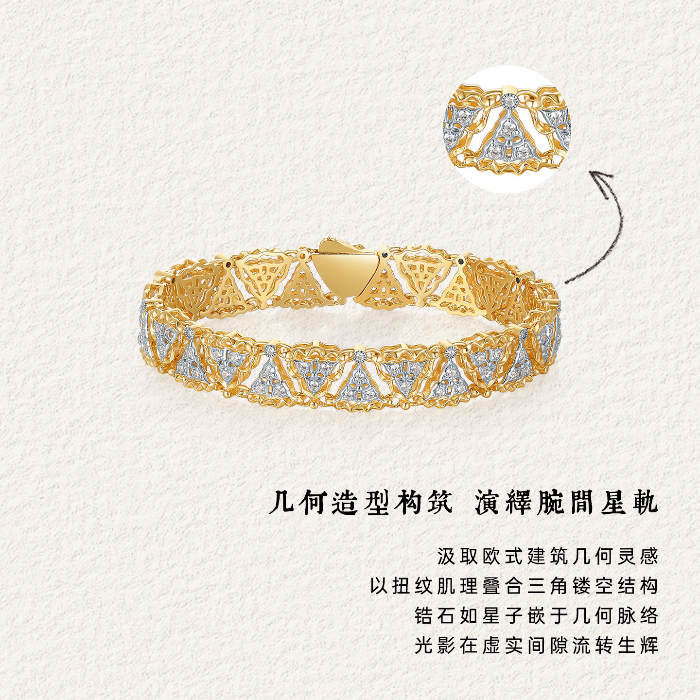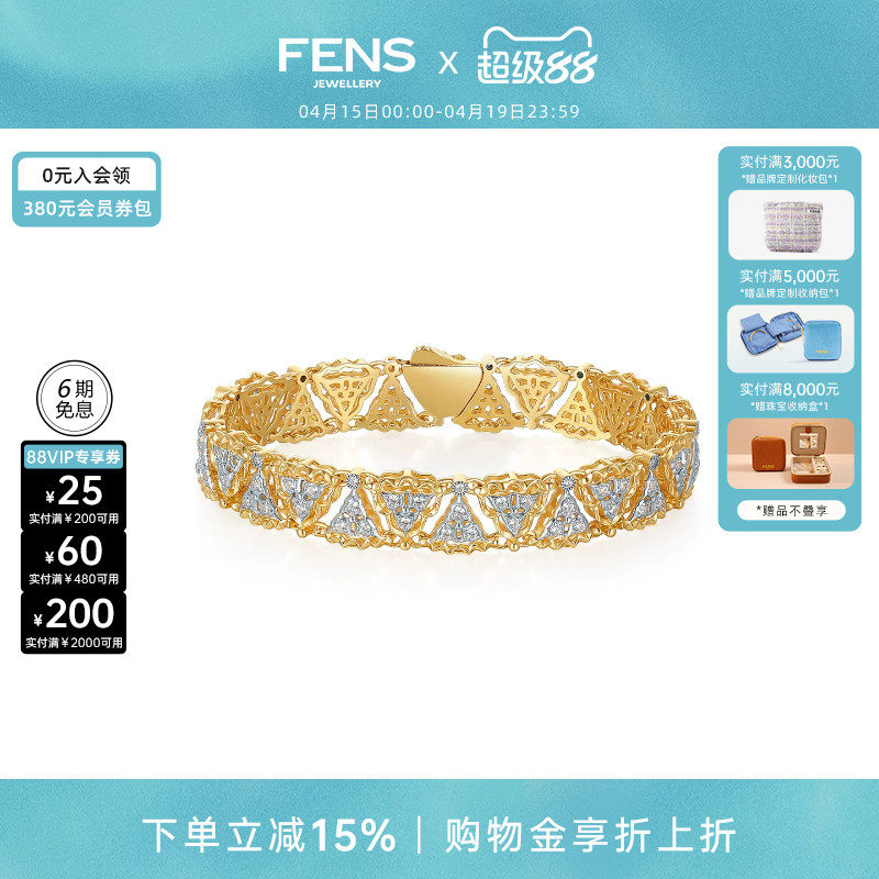 FENS珠宝 浮光织境系列棱光锆石手镯女复古立体925银镶嵌手链手饰