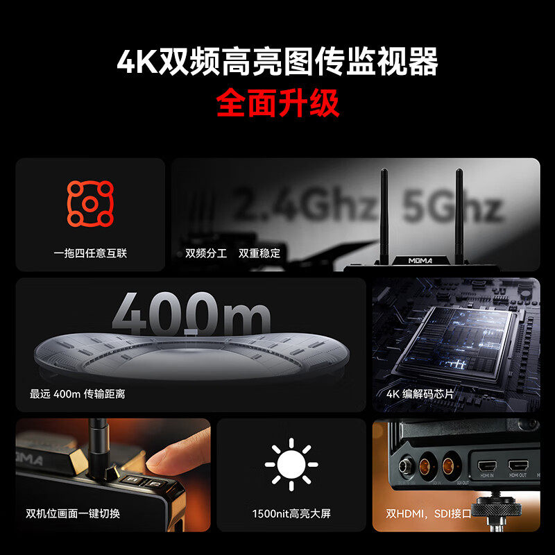 MOMA猛玛极影7无线图传监视器直播短剧拍摄4k高清1500NIT高亮收发一体屏幕导演影视监视器外接显示屏7寸