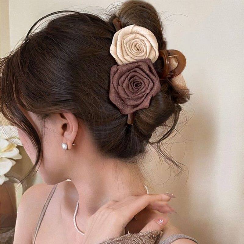 花开甜美百搭干枯玫瑰抓夹花朵发夹后脑勺鲨鱼夹2026新中式发饰
