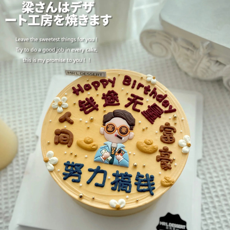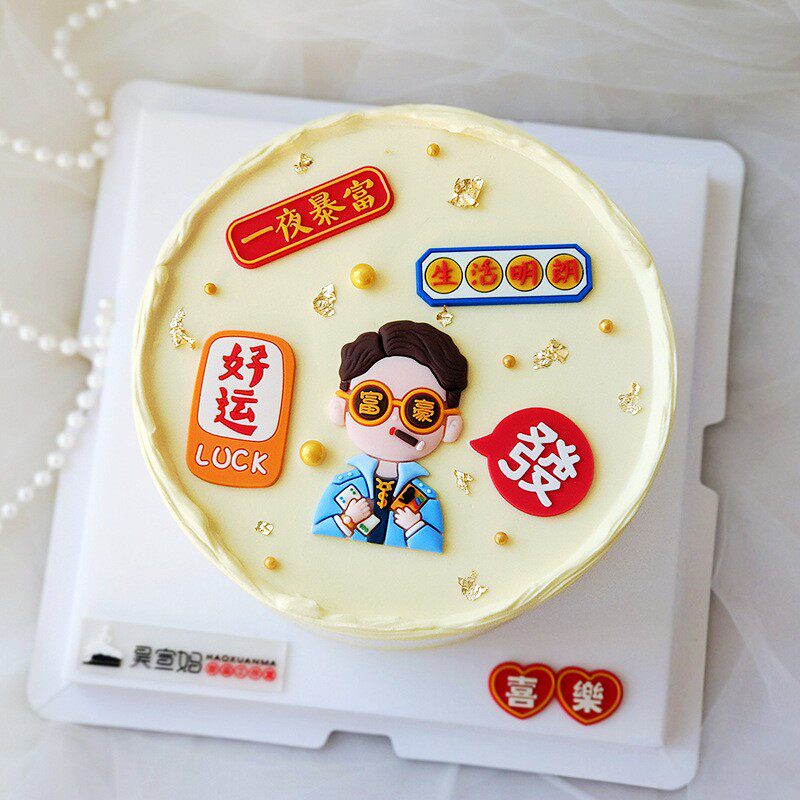男款生日蛋糕装饰富豪爸爸软胶发字生活明朗一夜暴富好运插件摆件