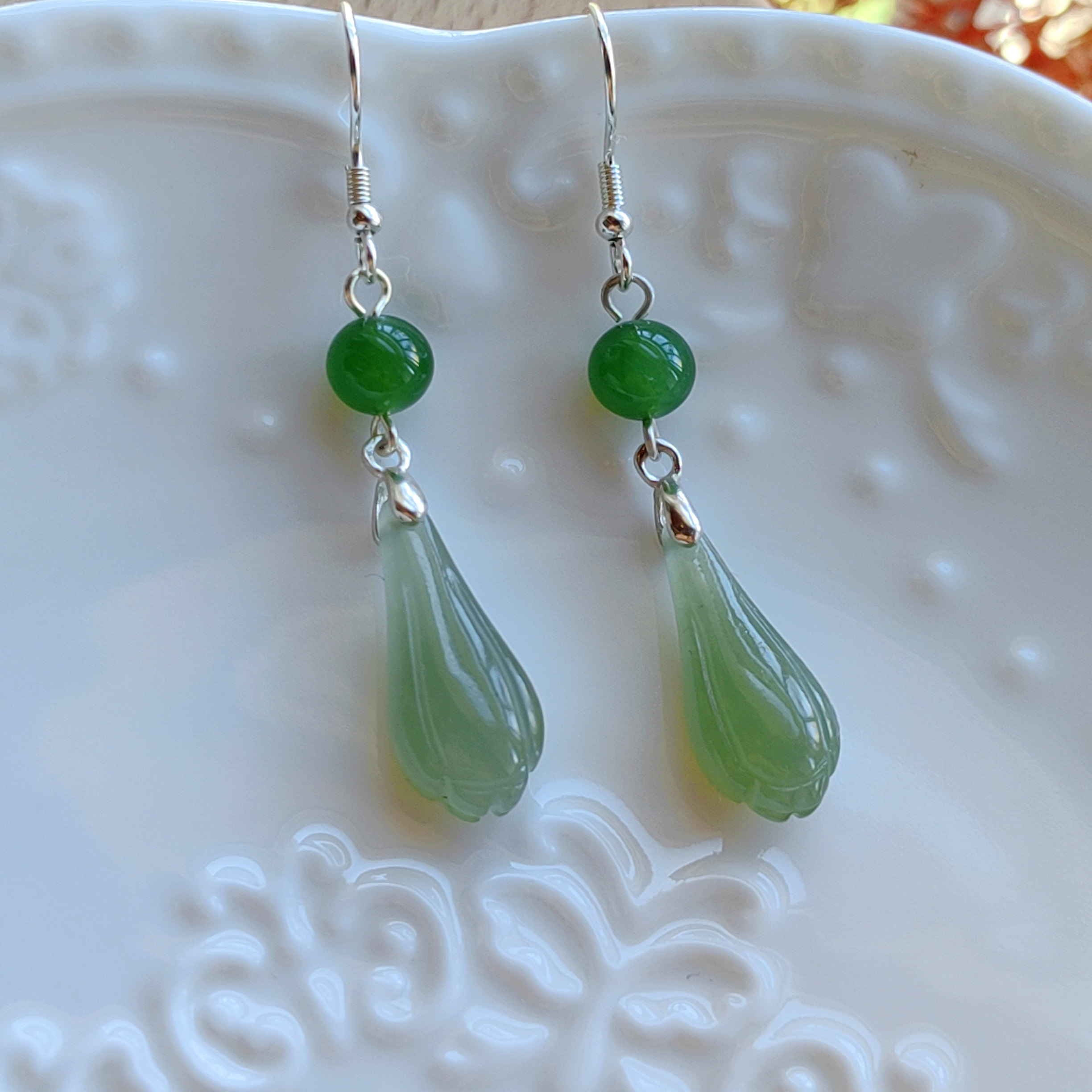 天然和田玉耳环新中式国风玉兰花耳坠纯天然玉石古风旗袍纯银耳坠