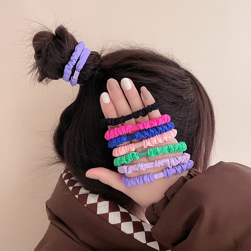 2026年新款蓝色小肠圈简约头绳皮套褶皱荧光发圈扎马尾发绳女气质