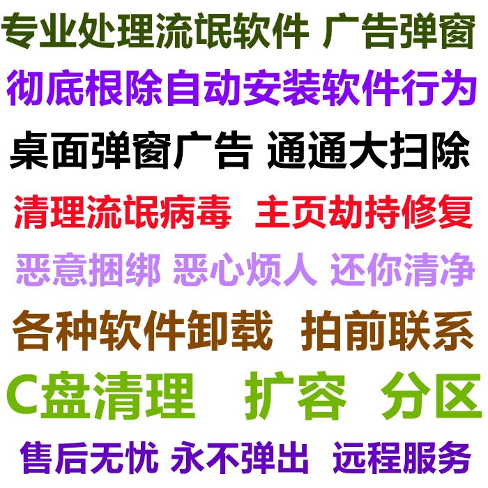 电脑远程c盘清理扩容笔记本磁盘分区流氓软件广告弹窗内存清理