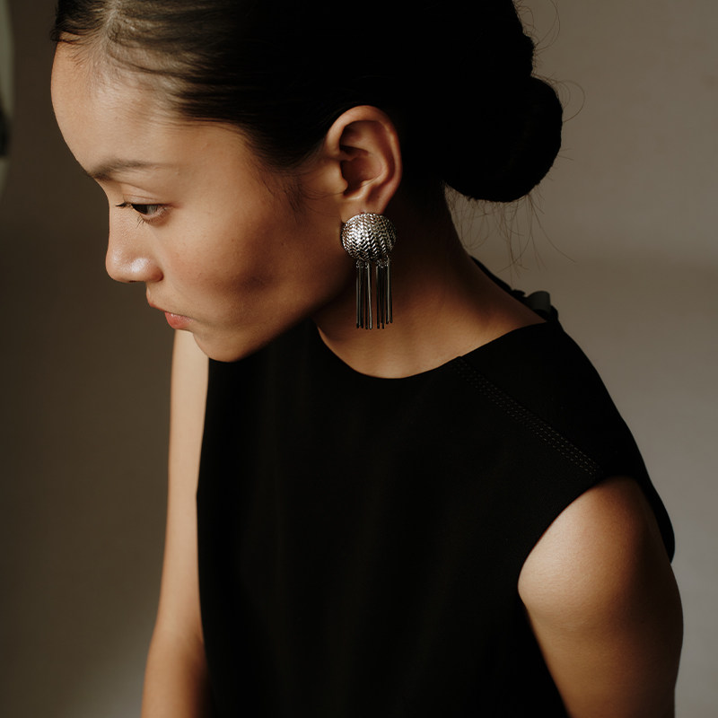 ZHAO ACAP原创设计竹编流苏耳环高级感耳钉