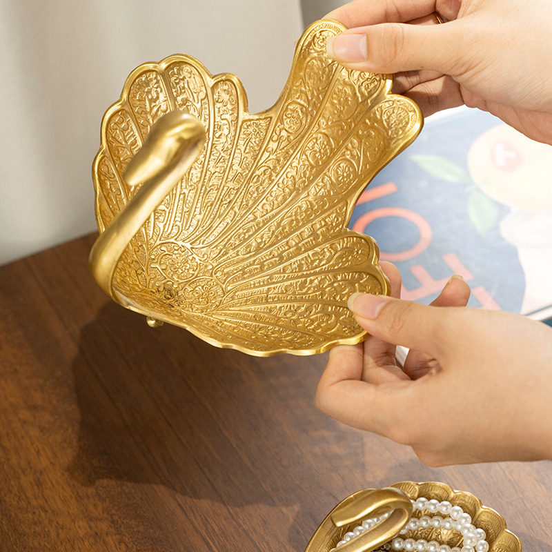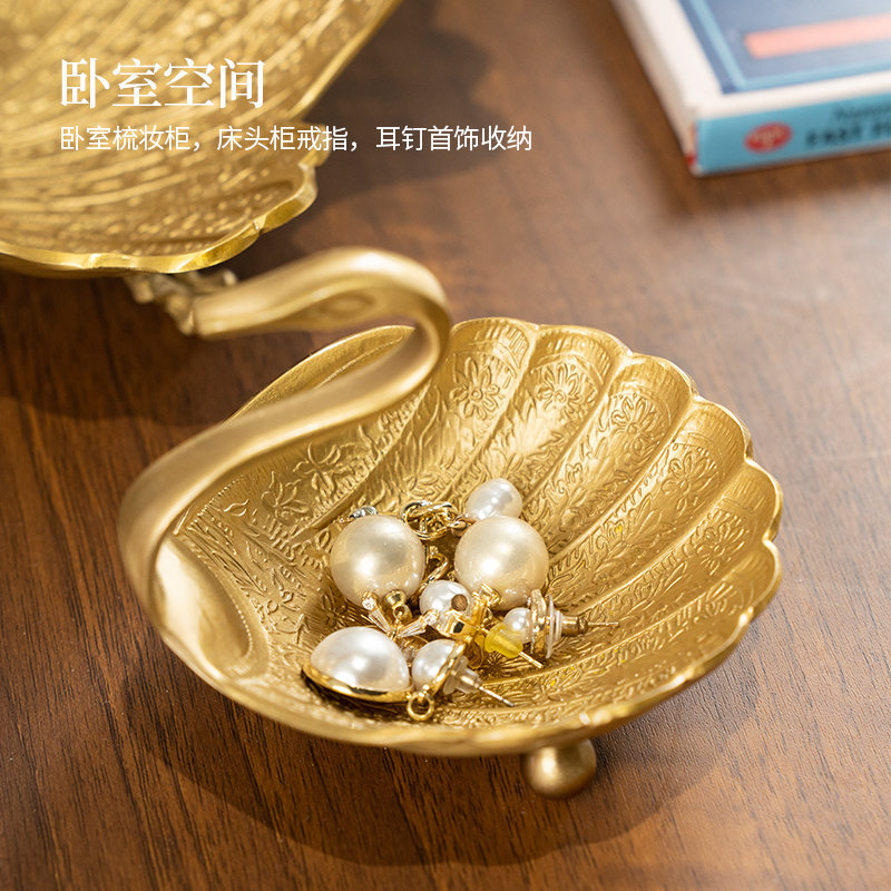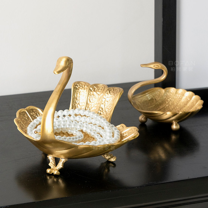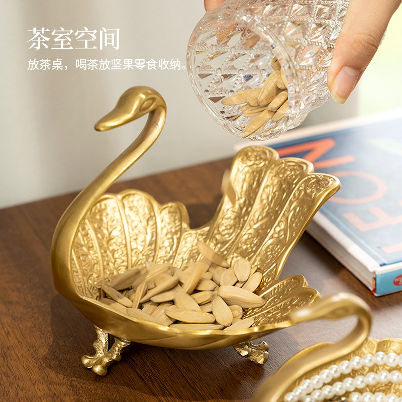 柏梵美式黄铜天鹅干果盘摆件高档客厅茶几桌面装饰品乔迁新居礼物