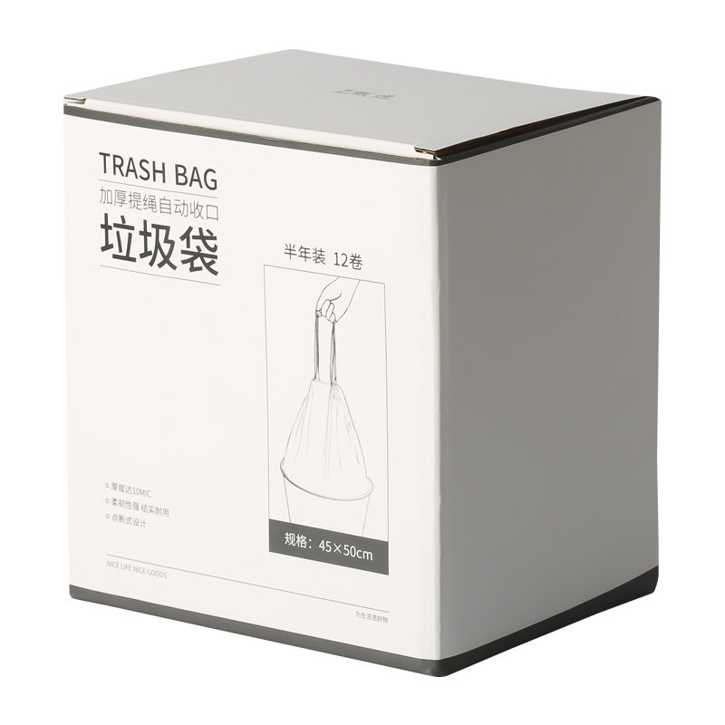 纸盒装大号抽绳垃圾袋家用厨房手提收口垃圾袋180只加厚款半年装