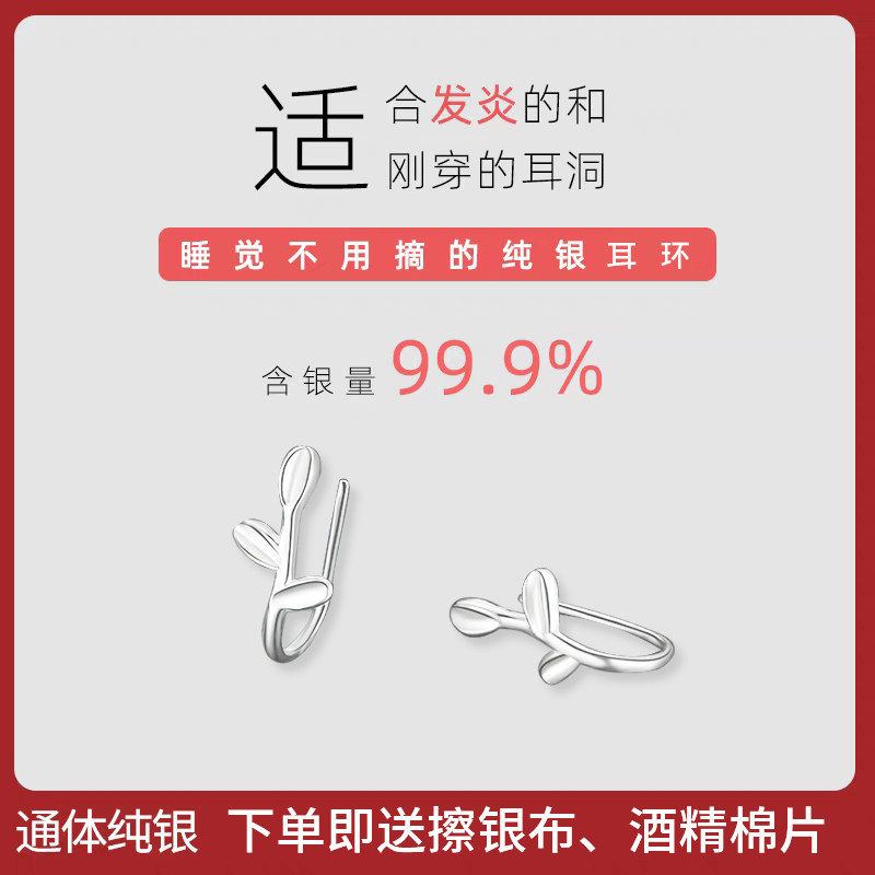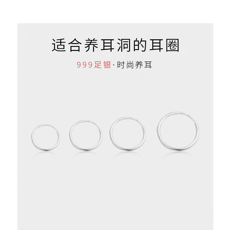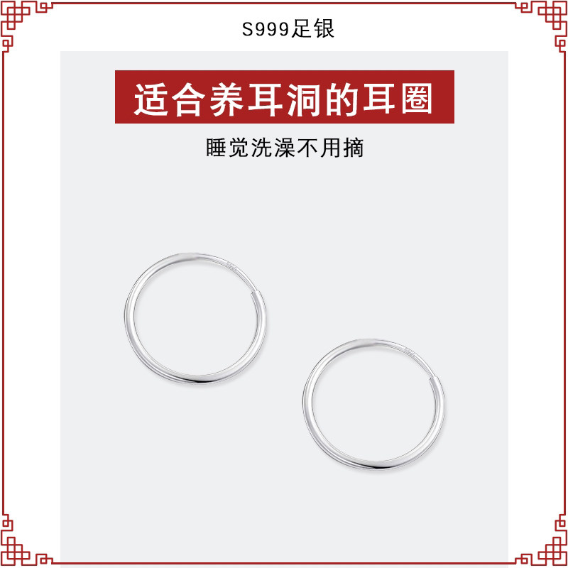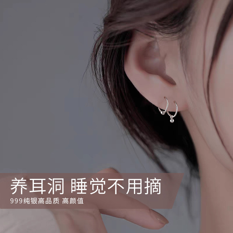 999纯银耳环女耳坠高级感耳骨钉睡觉免摘养耳洞耳扣耳圈素圈耳饰
