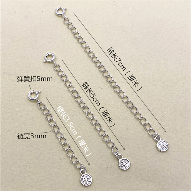 s925银延长链项链可调节尾链百搭加长链手工diy手链编绳链条配件
