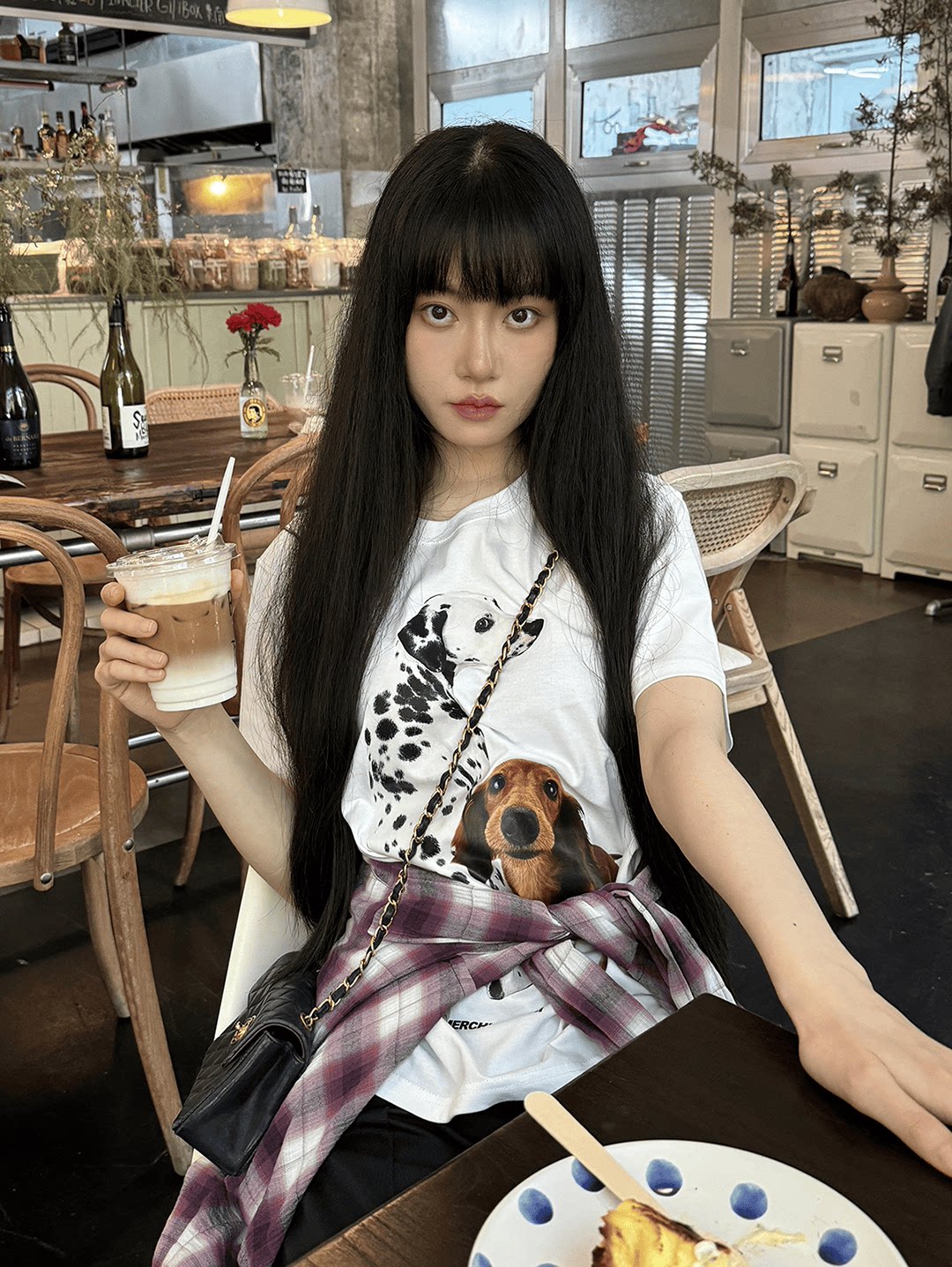 Shiitake x MerchiMerchi联名款斑点腊肠狗正肩T恤