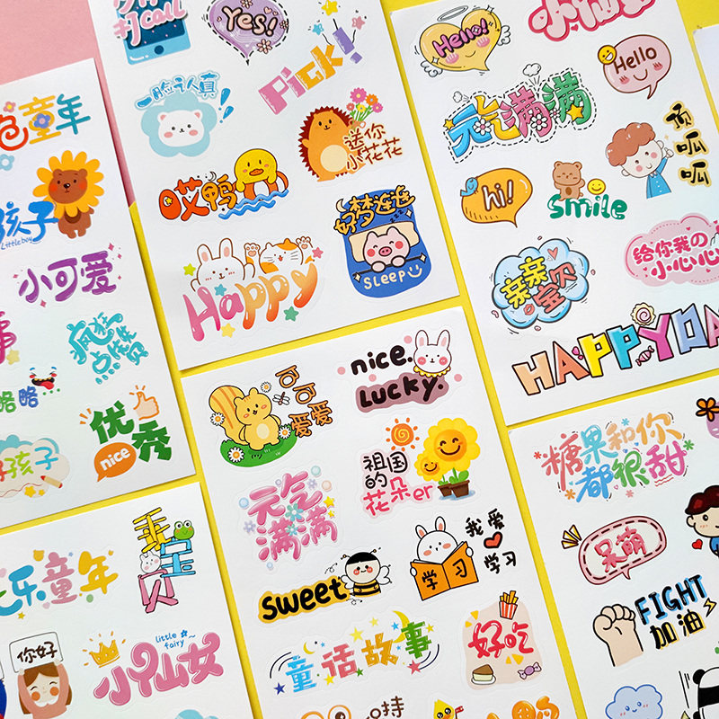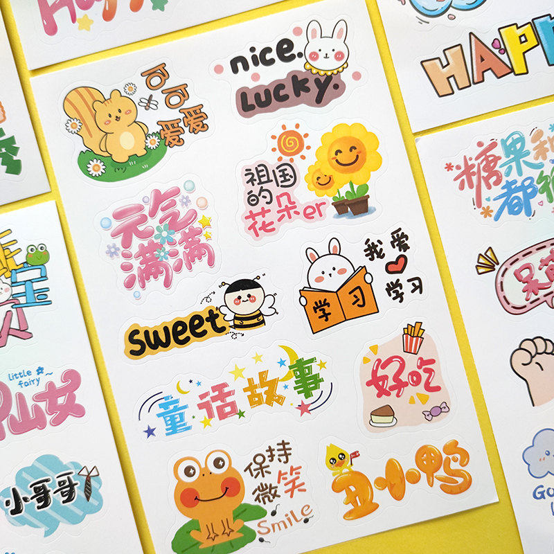 萌趣卡通文字儿童贴纸幼儿园成长手册档案宝宝相册手抄报装饰素材