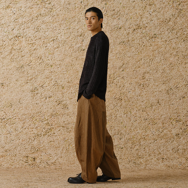 【MORIN KHUUR 牧仁】汉麻拼接弧线宽松长裤