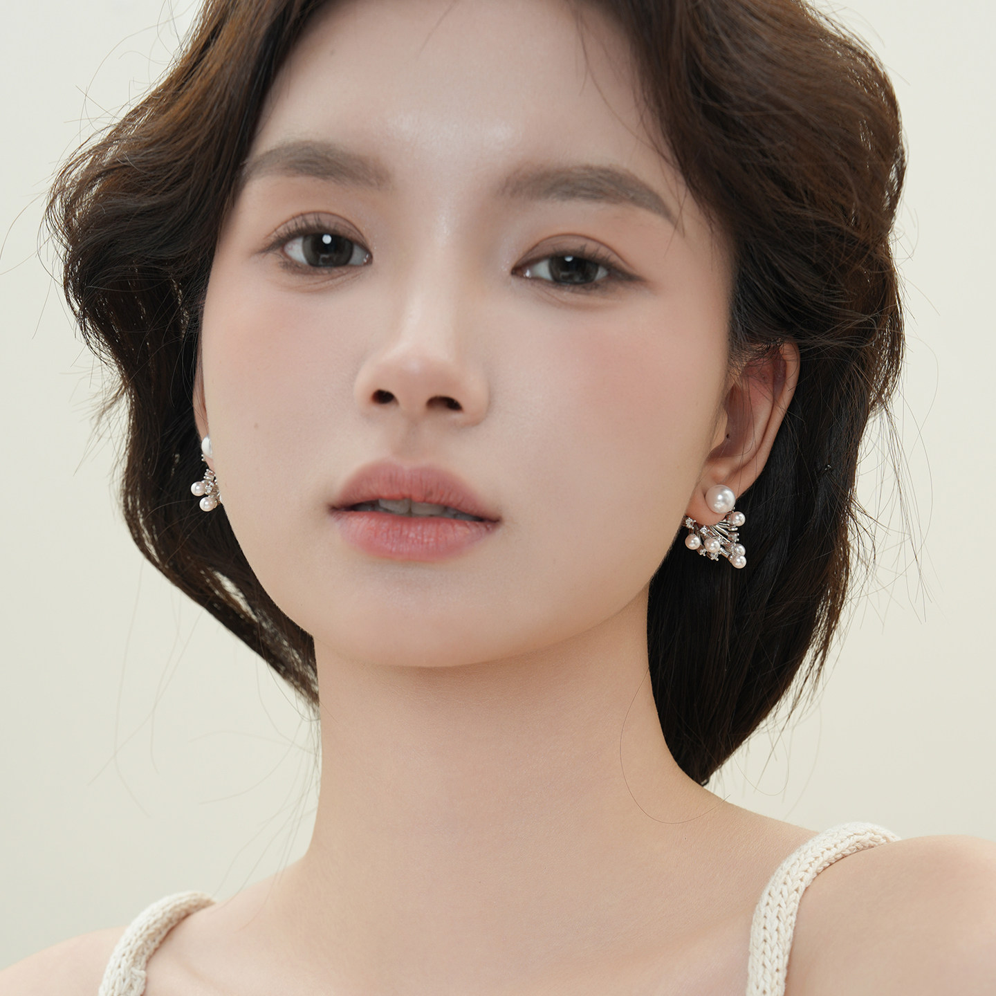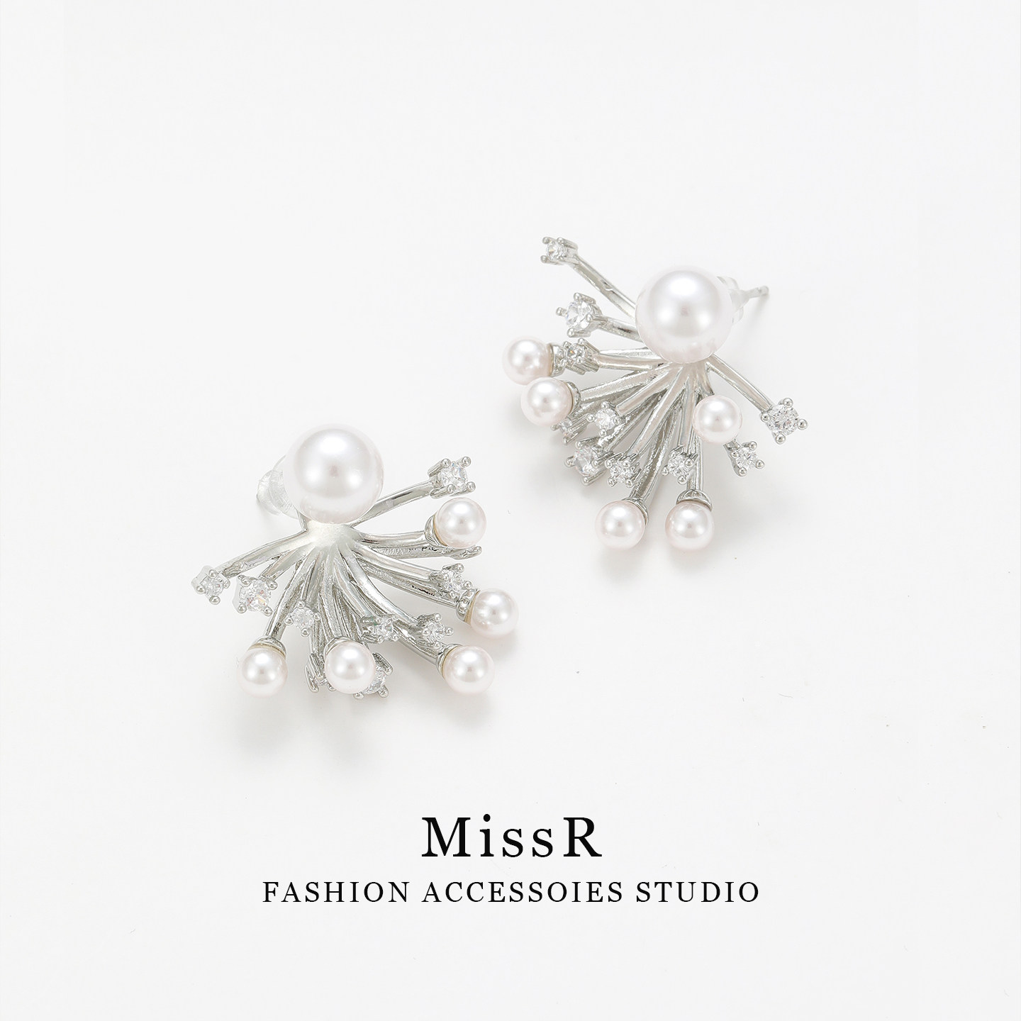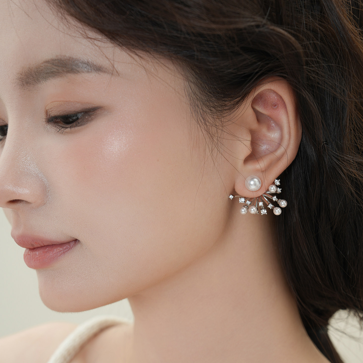 璀璨烟花悬浮后挂式锆石珍珠耳钉女士2025新款高级感耳环轻奢耳饰