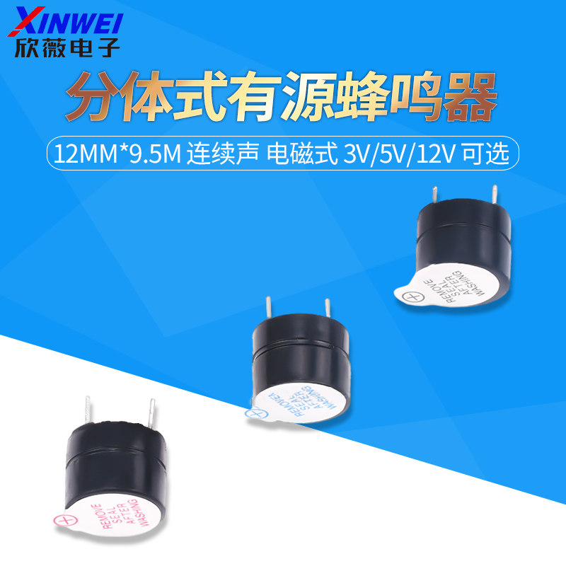 5V 3V 3.3V 12V有源蜂鸣器12mm*9.5m高连续声电磁式 分体直插长声