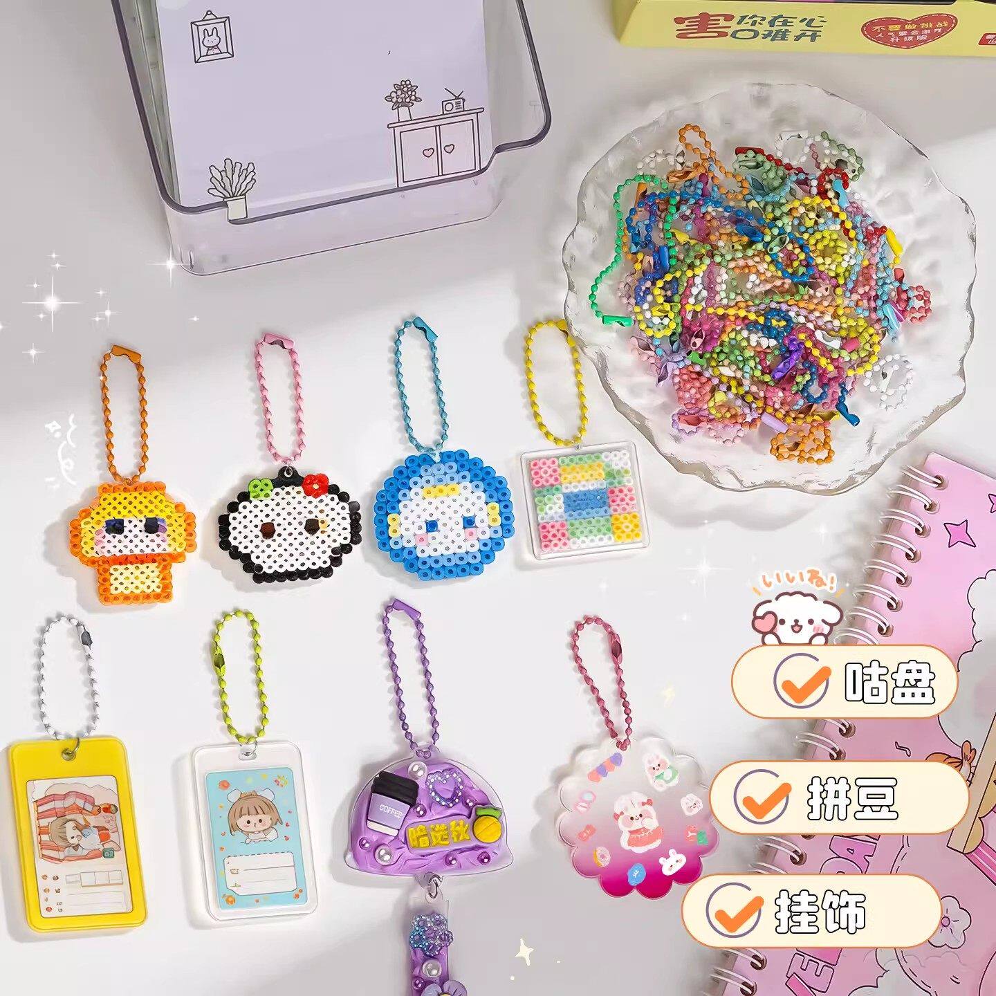 拼豆钥匙扣diy配件拼豆挂件挂扣链条公仔玩偶手工饰品装饰链子E1