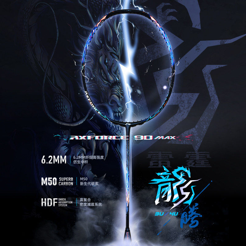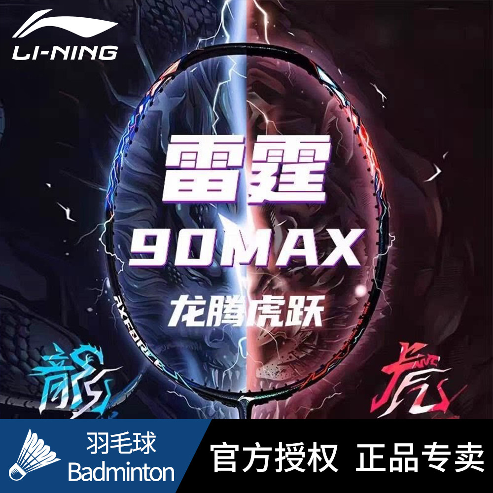 李宁官方正品羽毛球拍雷霆90龙虎MAX 高端专业全碳纤维进攻型单拍