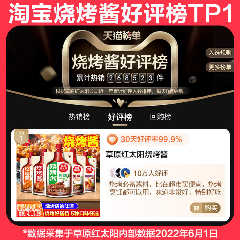 草原红太阳烧烤酱烤肉酱家用奥尔良腌料烤肉蘸料刷酱烧烤调料