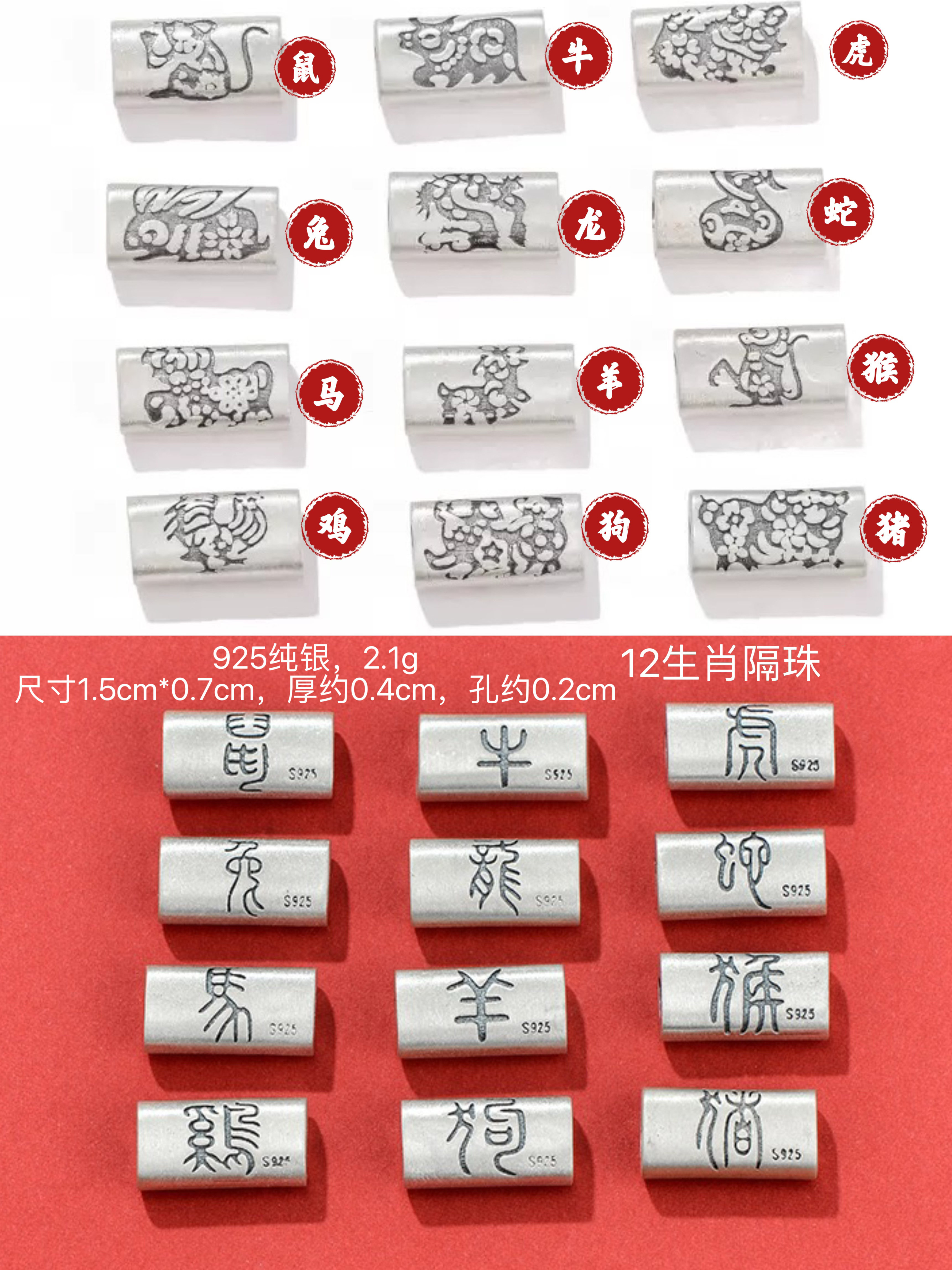 不闲原创手作 12生肖银饰列表 可选 925纯银999足银