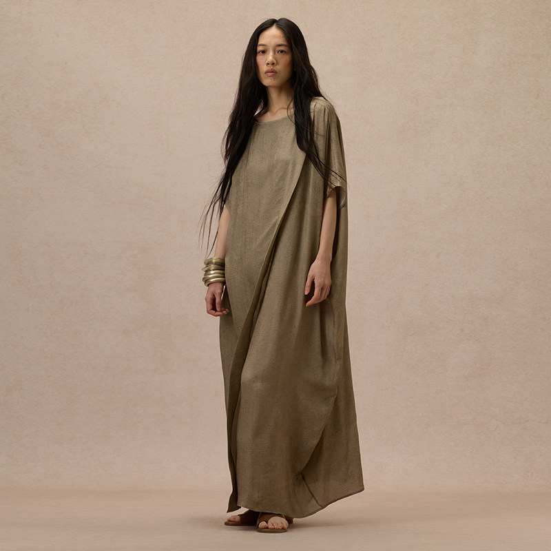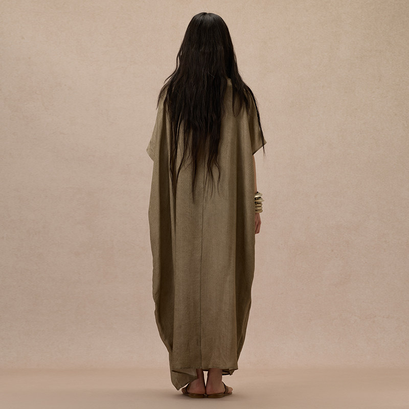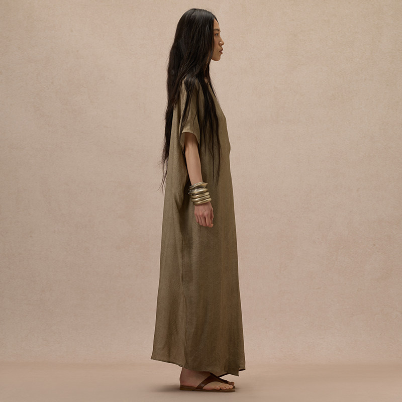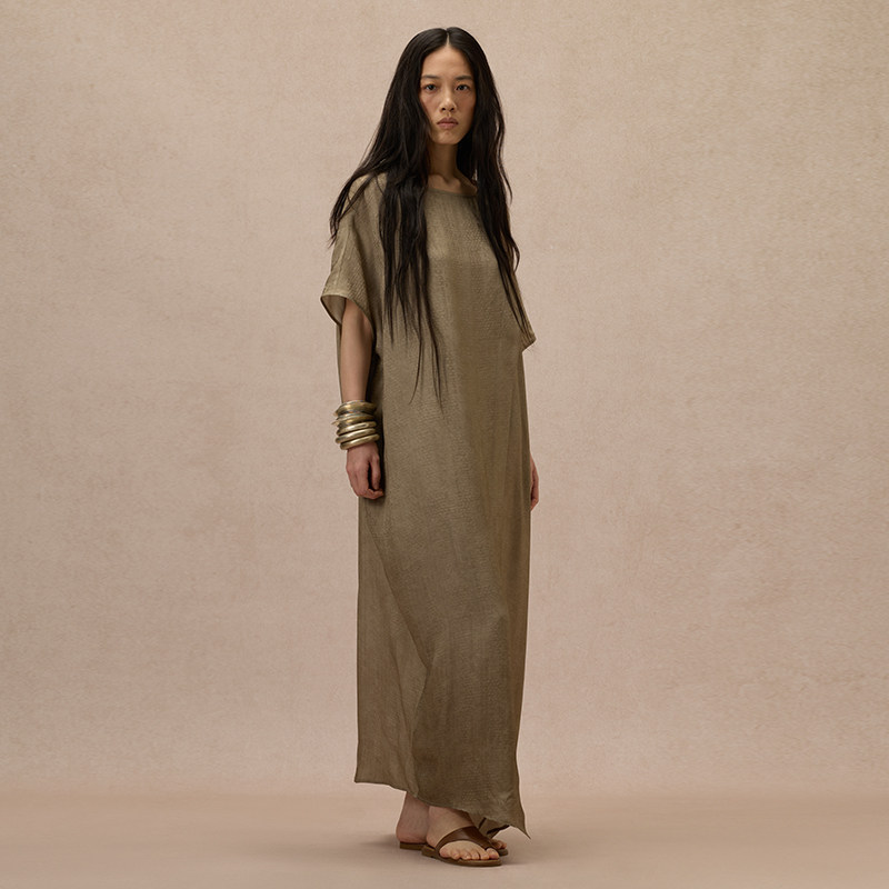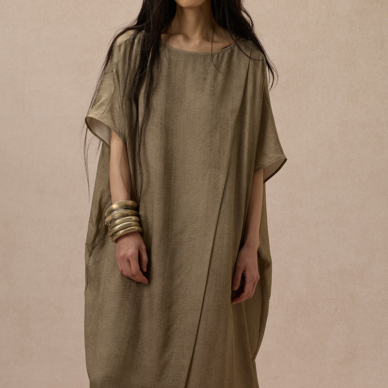 【MORIN KHUUR 牧仁】桑蚕丝提花宽松半袖连衣裙