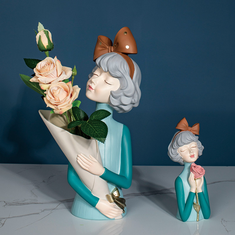 柏梵捧花女孩摆件家居装饰品北欧轻奢客厅电视柜装饰花瓶闺蜜礼物