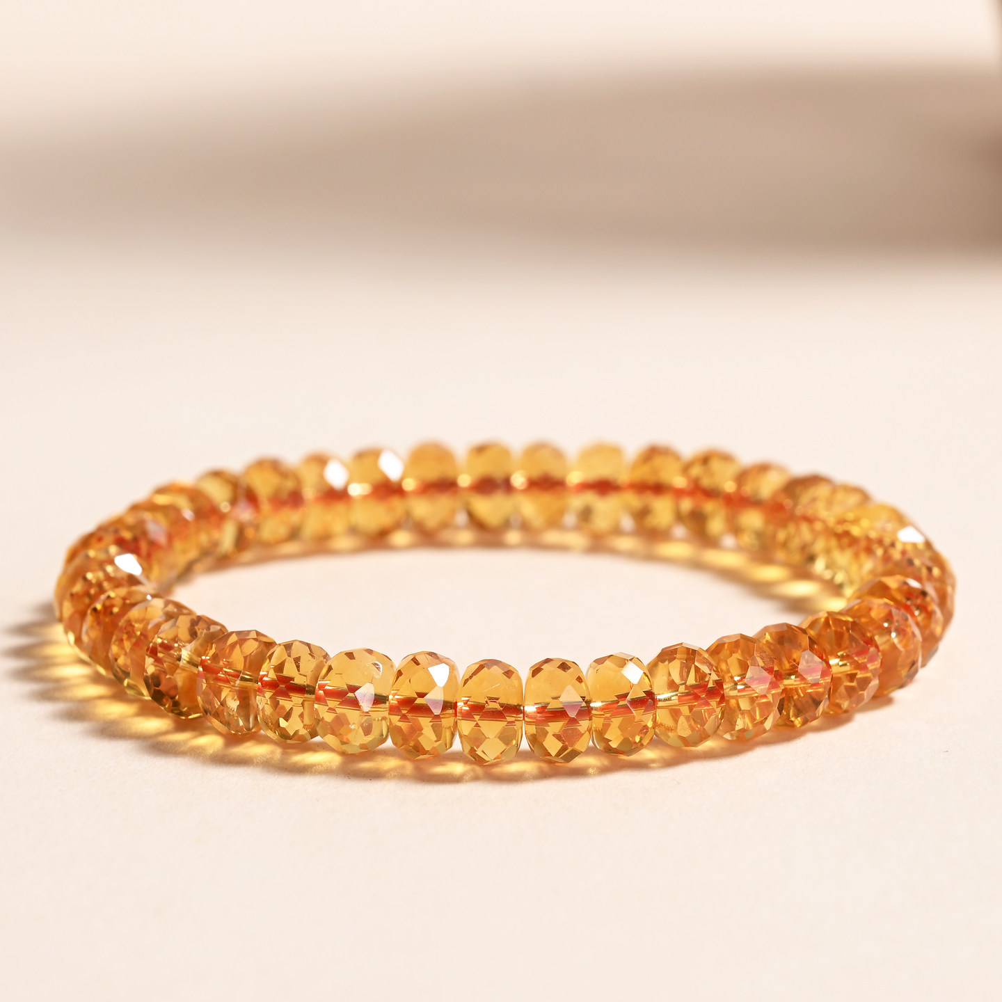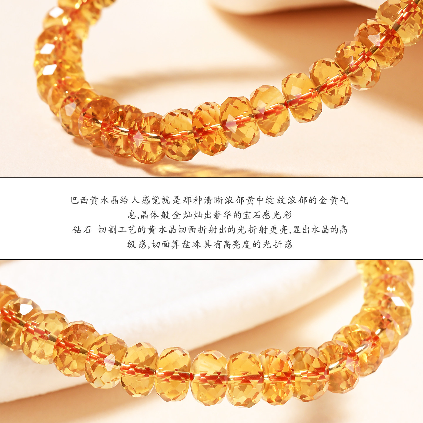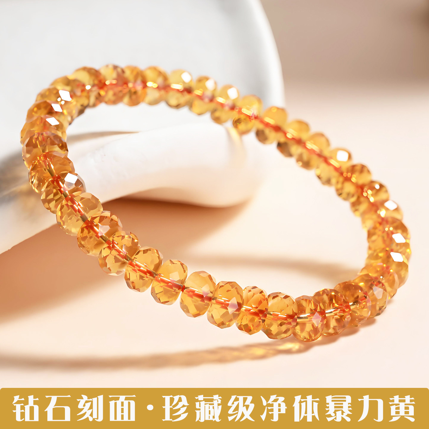 天然珍藏级巴西暴力黄刻面黄水晶手串车轮珠随行金红料黄水晶手链