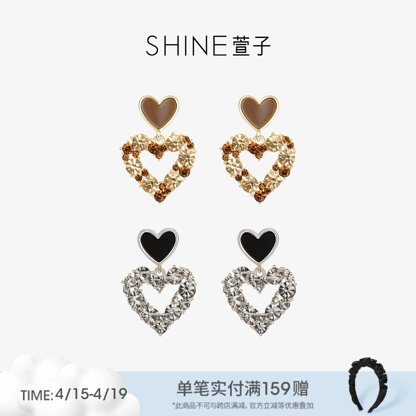 SHINE萱子饰品闪耀水钻爱心耳环女设计感灰色耳钉耳饰生日礼物