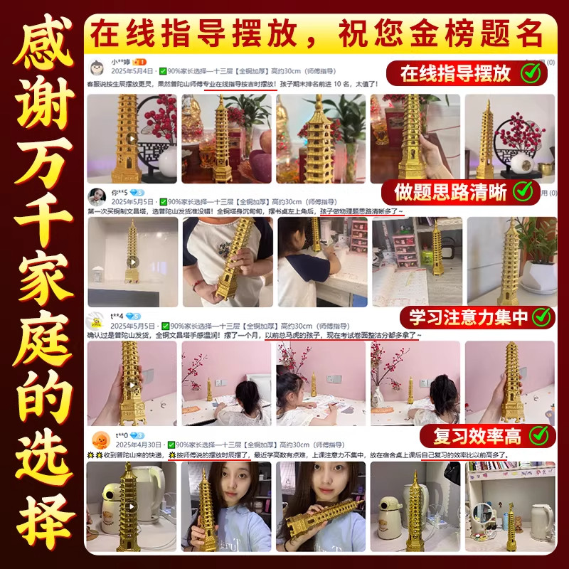 文昌塔摆件纯铜13层的9层的学生中考高考书桌黄铜铜制文昌宝塔