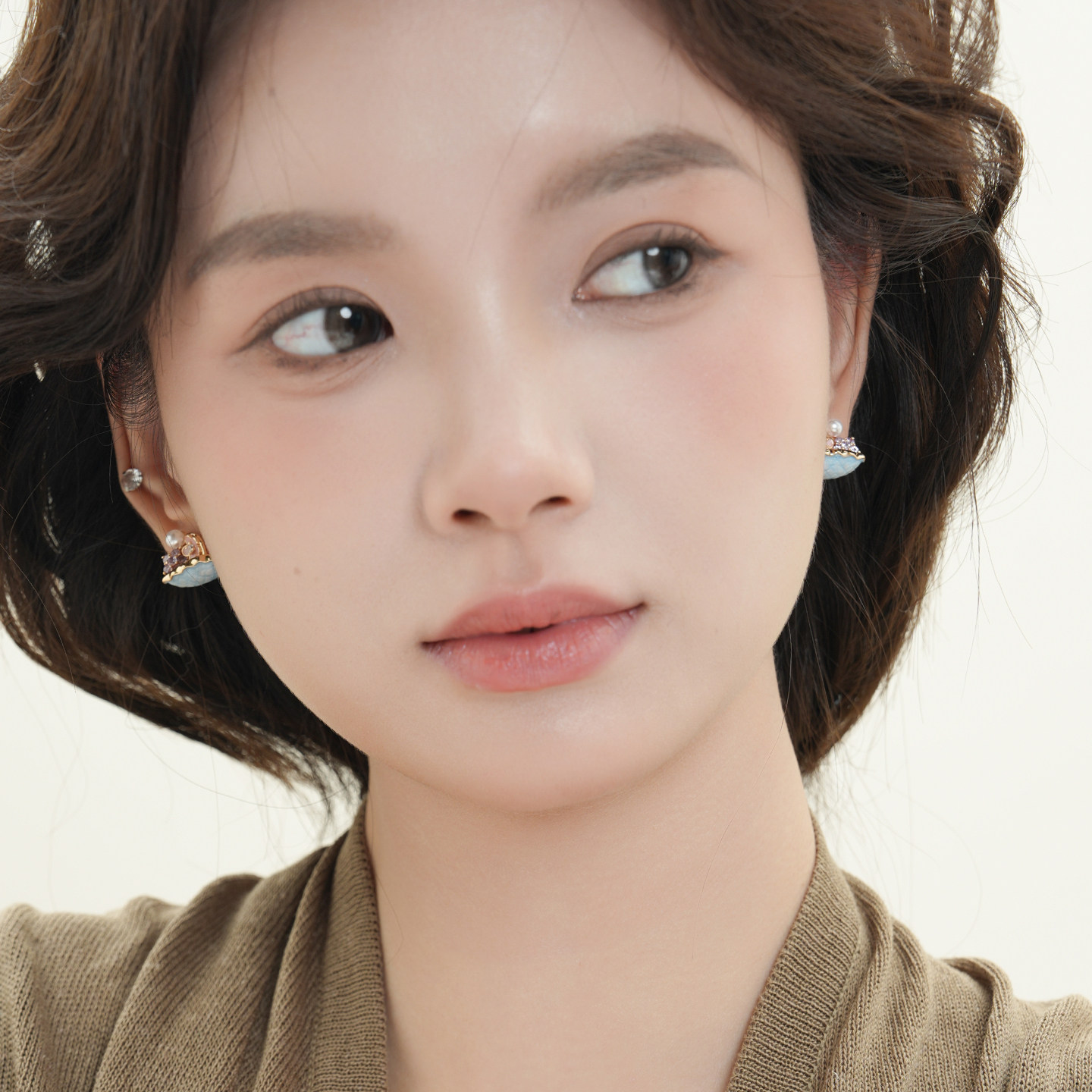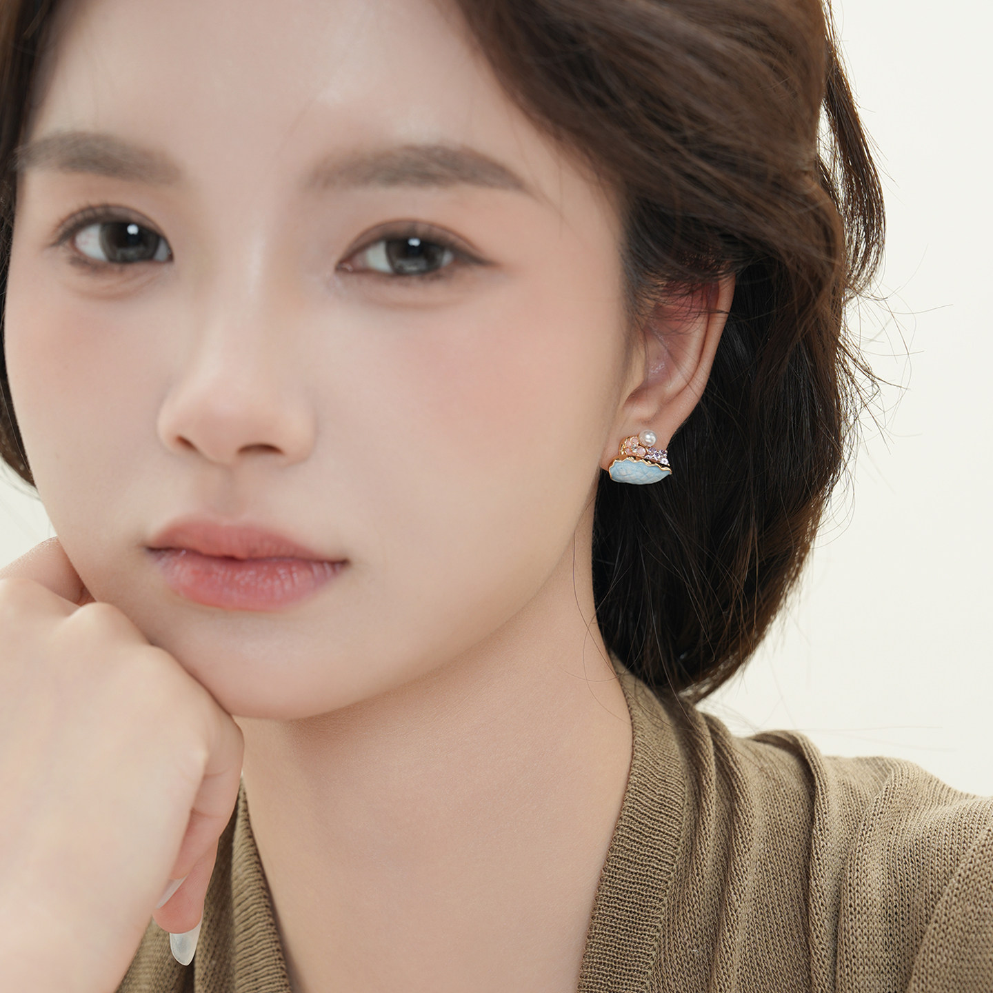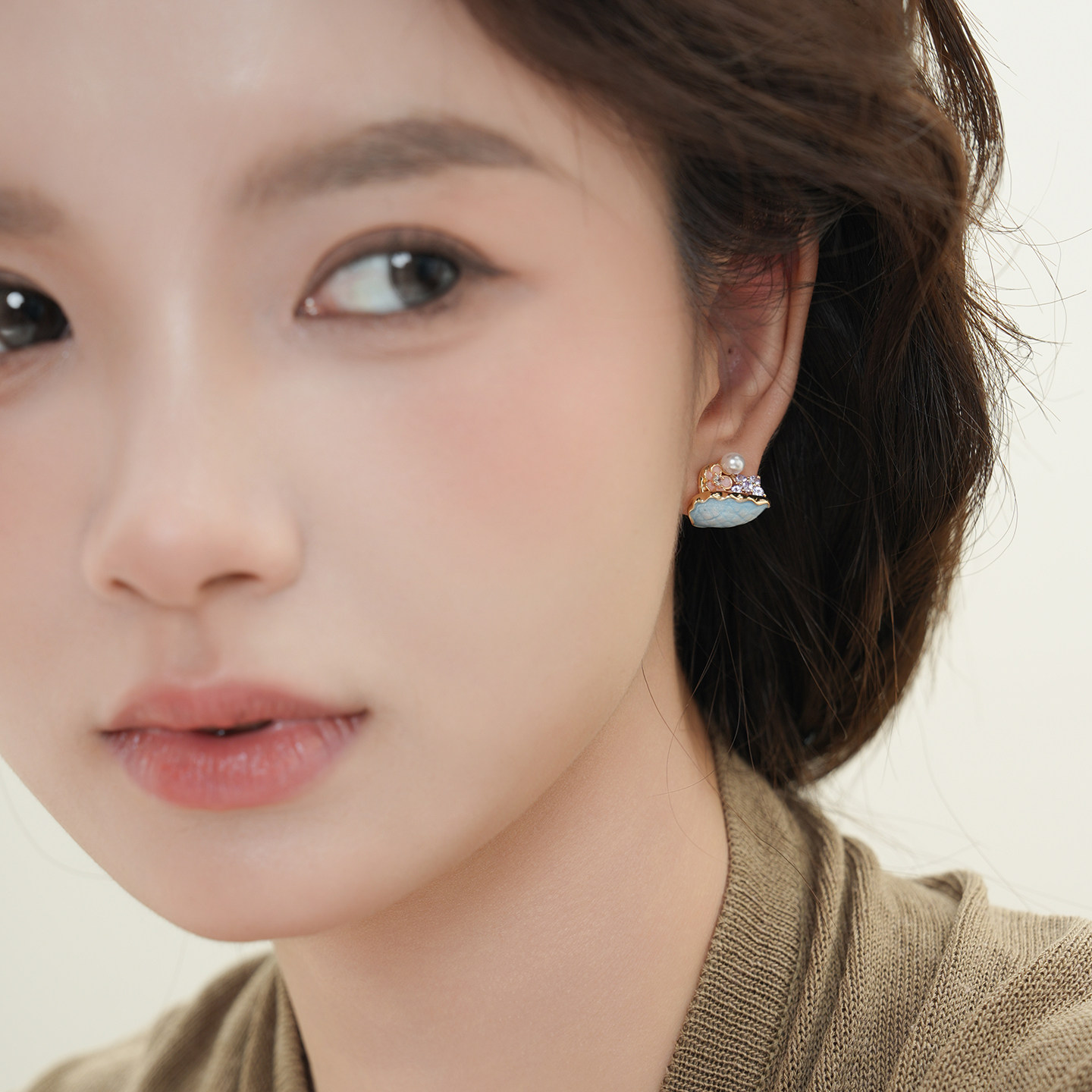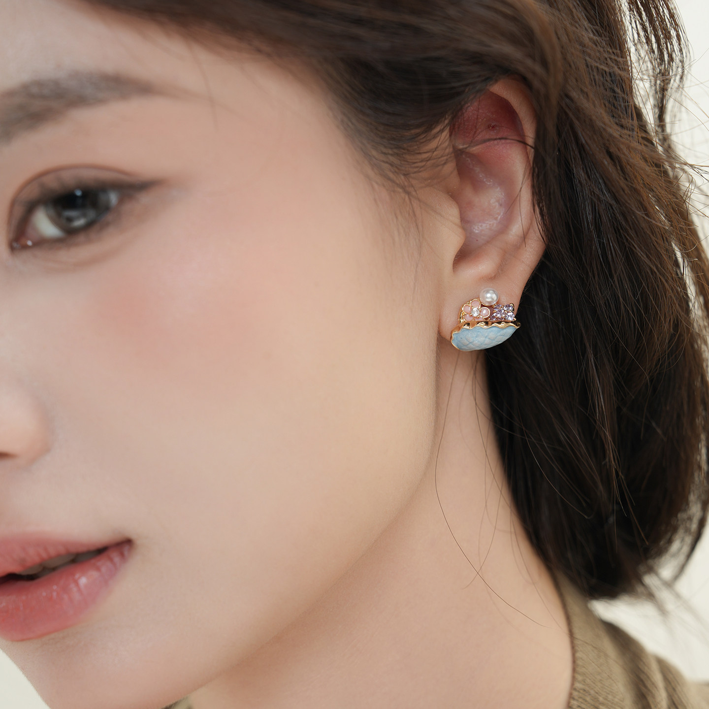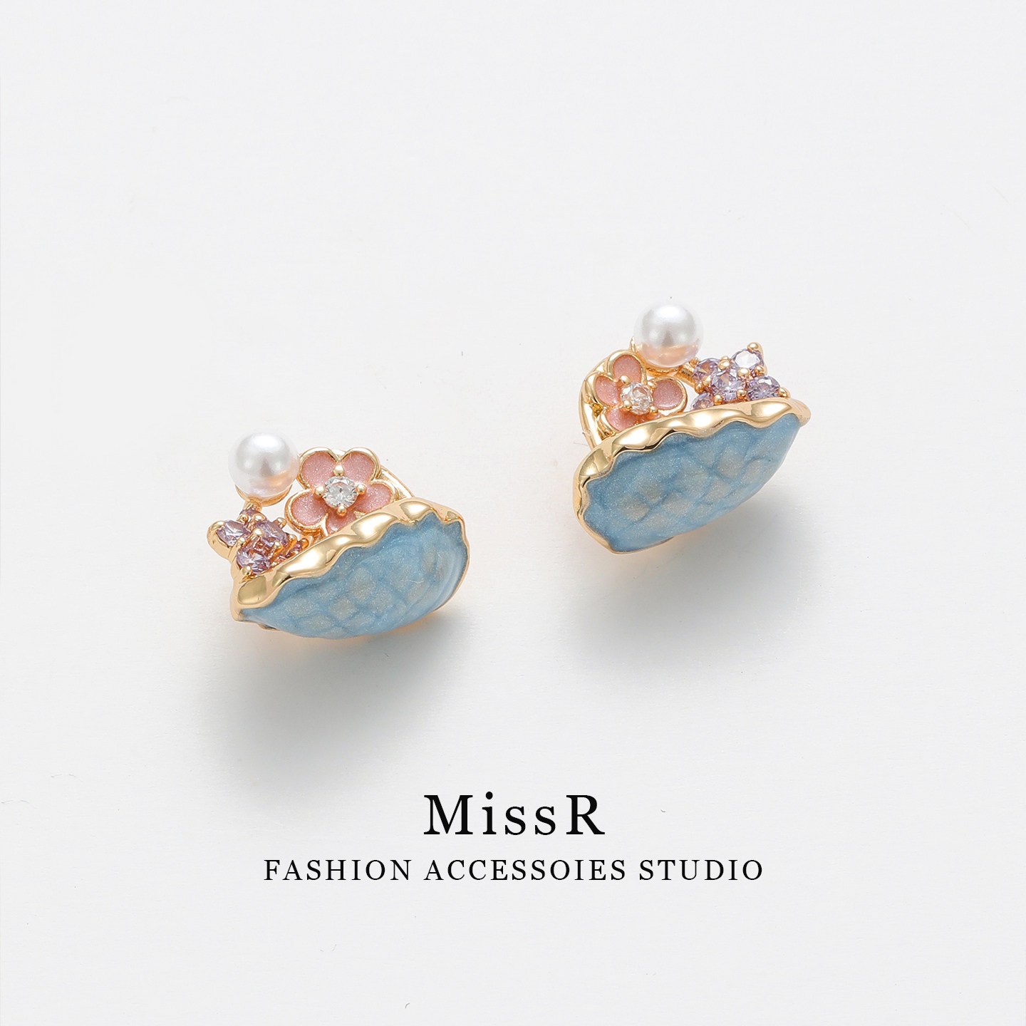 小众花篮锆石蓝色滴釉珍珠耳钉女2025新款高级感耳环轻奢独特耳饰