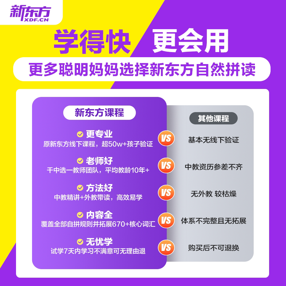 【新东方旗舰店】新东方自然拼读精讲视频讲义课件儿童小学英语启蒙零基础自然拼读记单词课视频程发音规则表挂图口语网听力雪梨