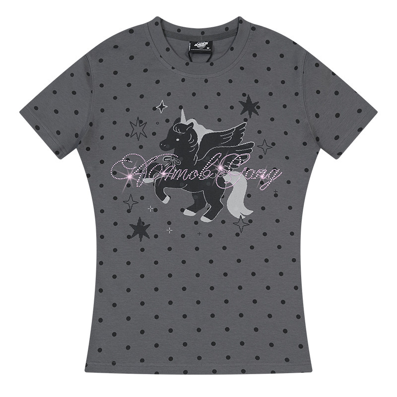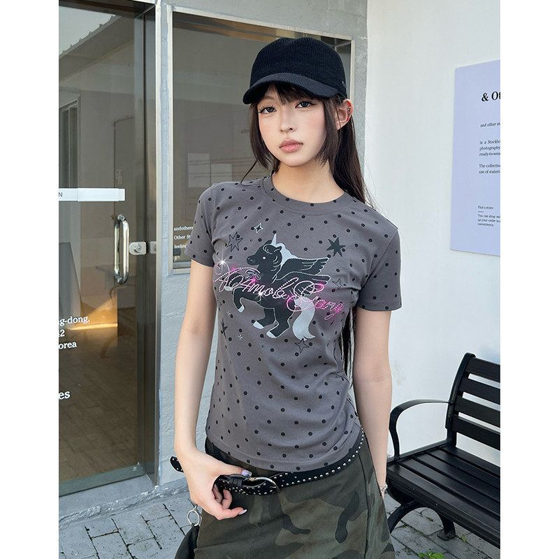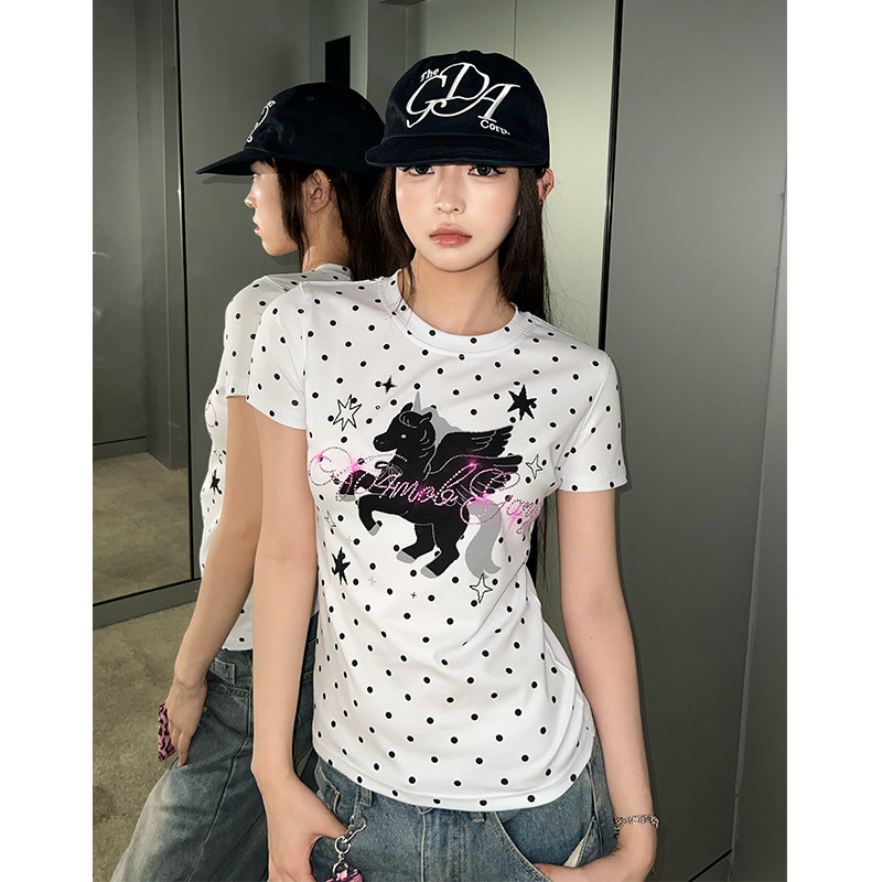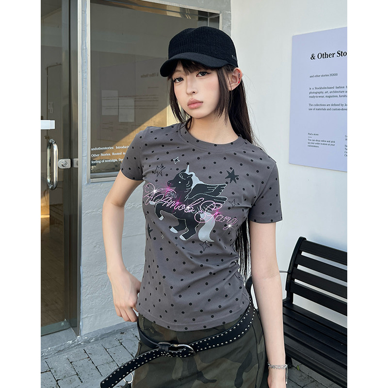 404MOB重工烫钻波点印花女款短袖T恤2026夏正肩显瘦修身轻亚潮Y2K