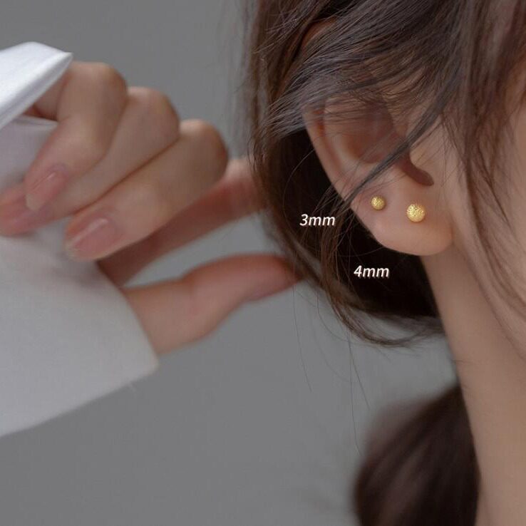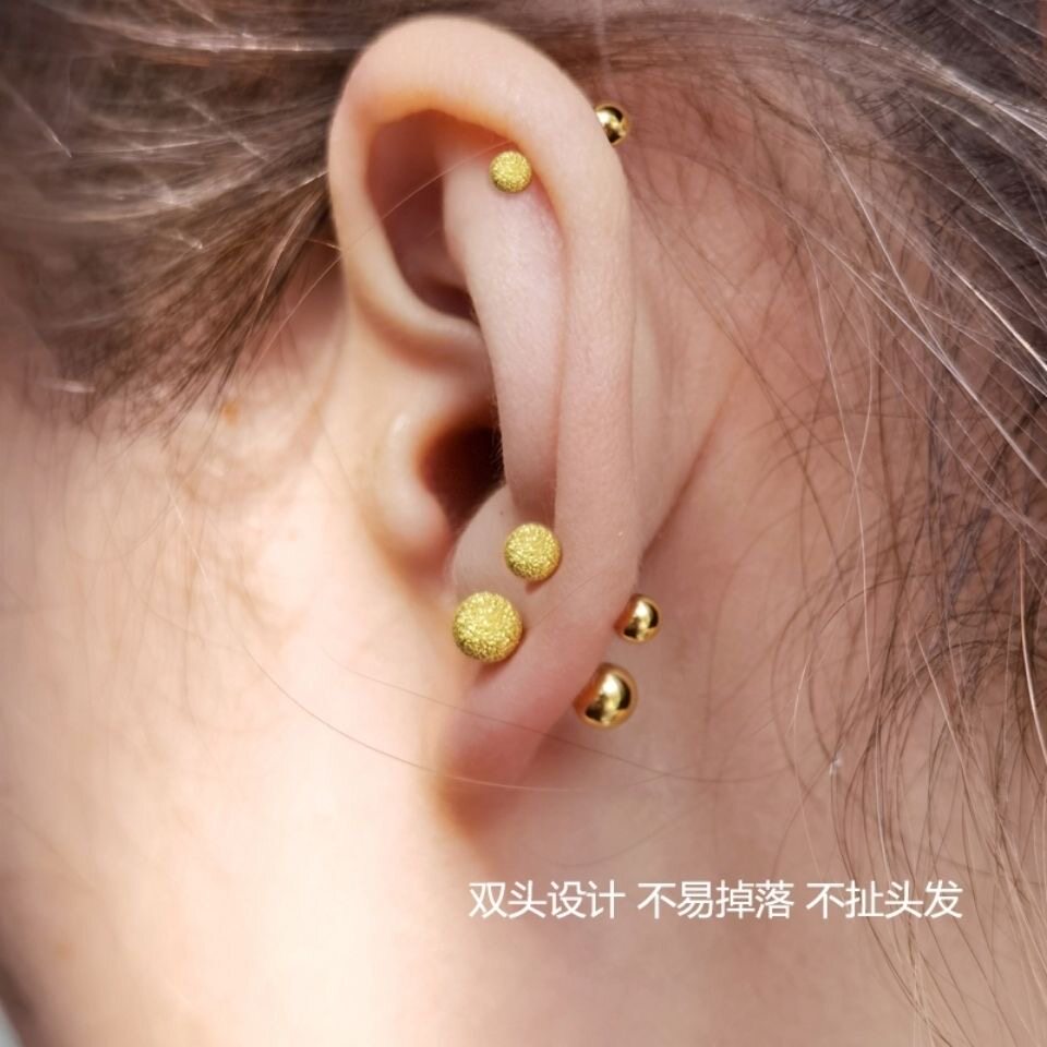 2025新款潮睡觉免摘养耳洞耳钉防堵磨砂超闪金色迷你小豆豆耳骨钉