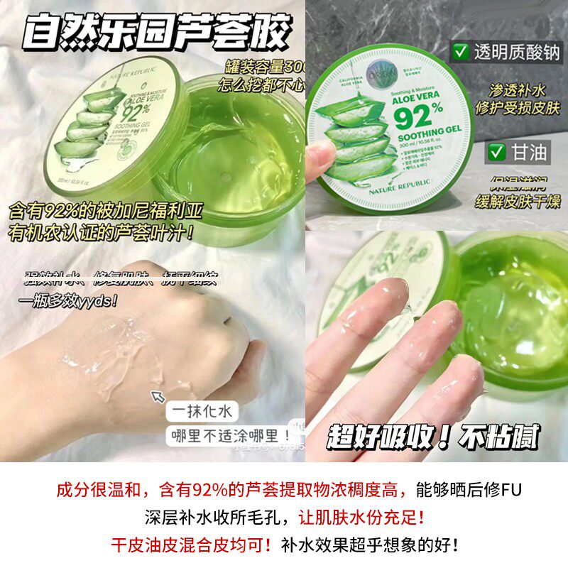 自然乐园芦荟胶补水保湿舒缓自然面霜男女专用秋冬滋养护肤