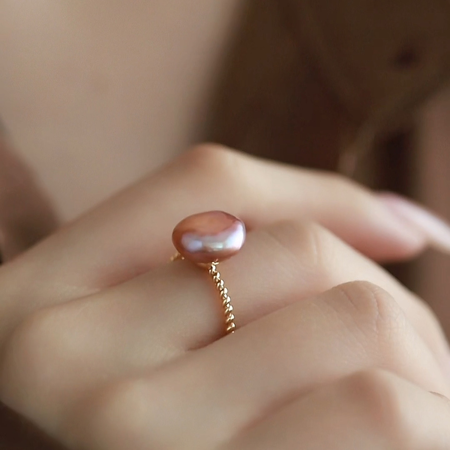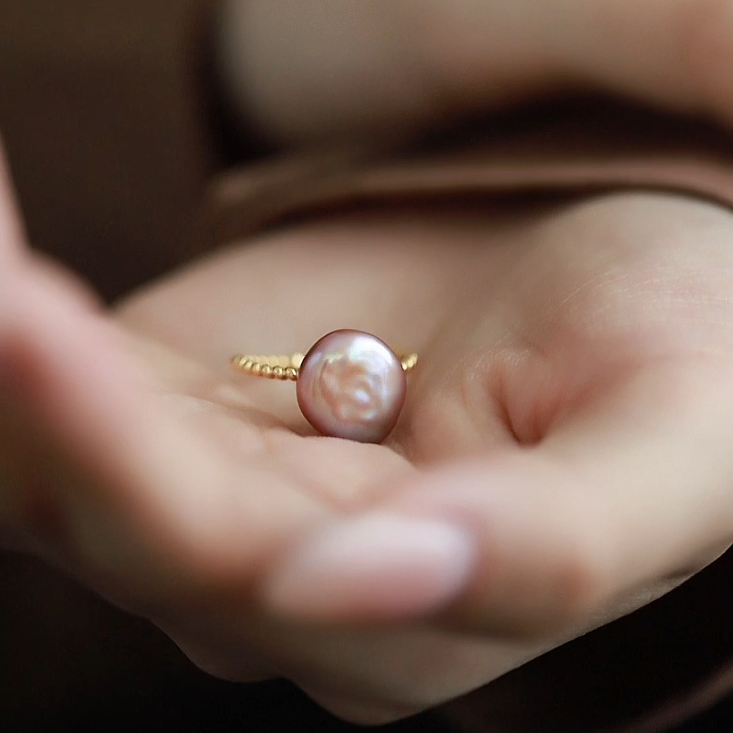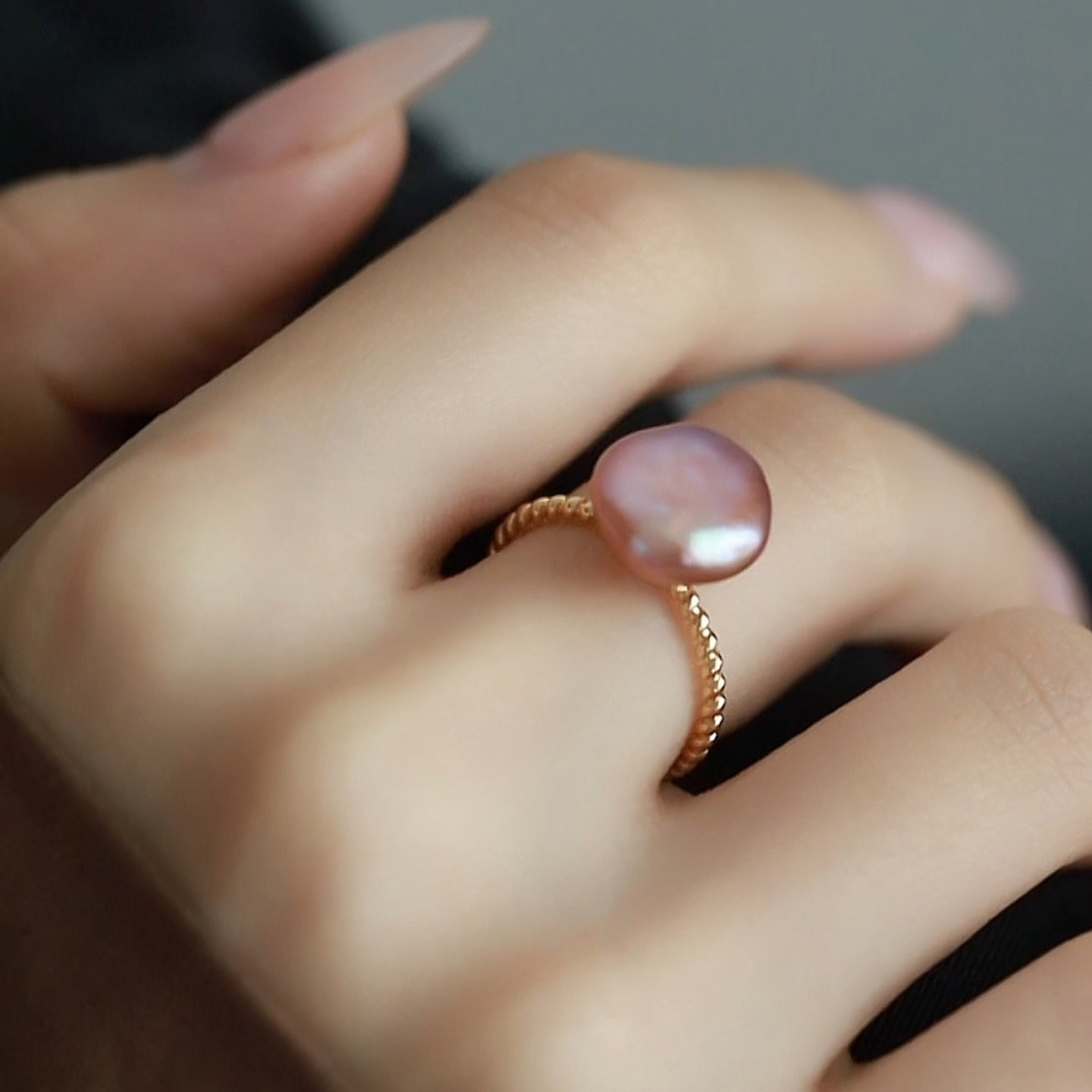 珍氏珠宝天然淡水巴洛克珍珠戒指女款 紫色时尚气质高级感开口戒