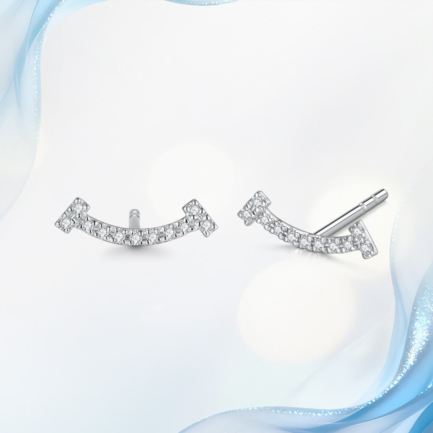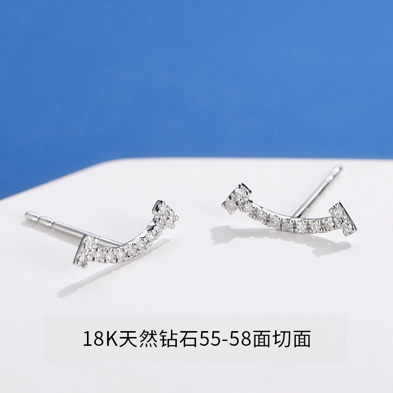 18K金天然真钻石耳饰女T家满钻微笑款耳钉经典百搭珠宝情人节礼物
