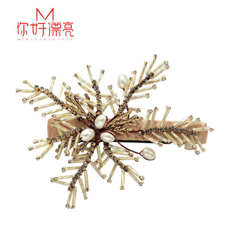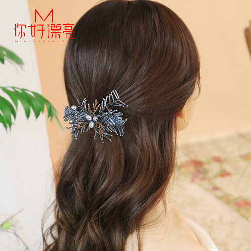 简约风气质弹簧夹大号横夹扎头发马尾夹发饰成人优雅发夹水晶横卡