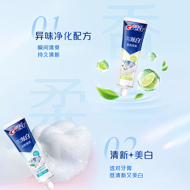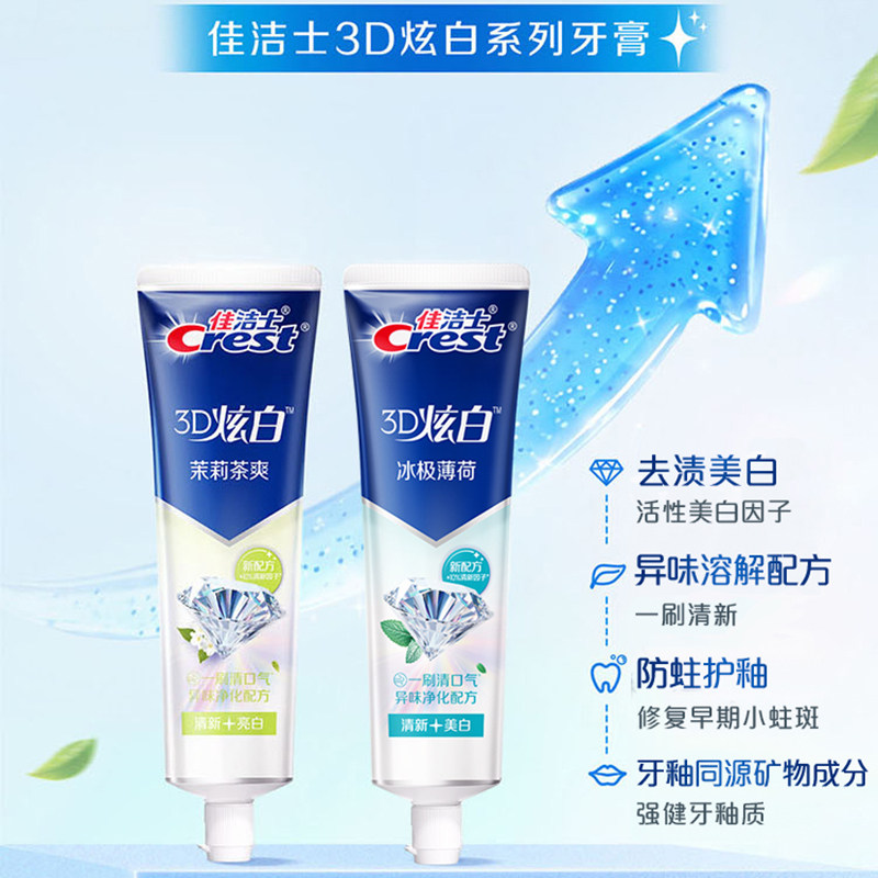 佳洁士3D炫白冰极薄荷牙膏170g清新口气清凉多效护理含氟套装正品