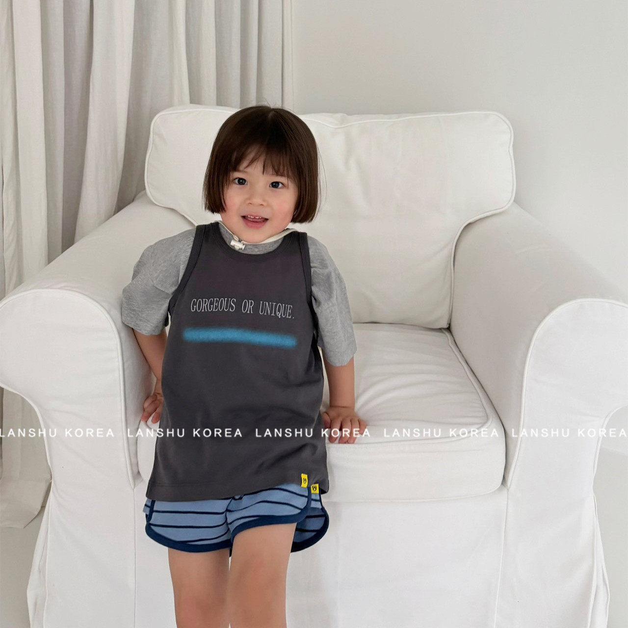 现货【Gou】懒鼠韩国童装26夏款中大童潮酷运动风轻薄无袖背心