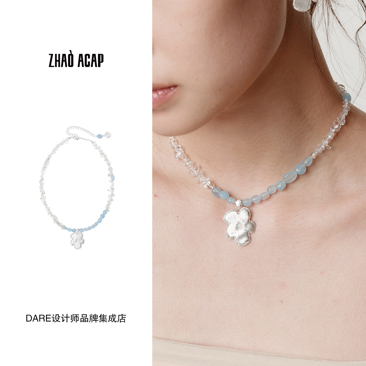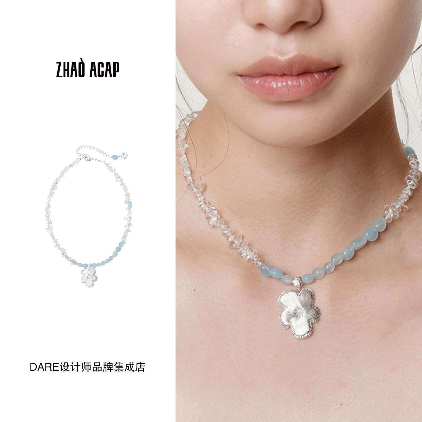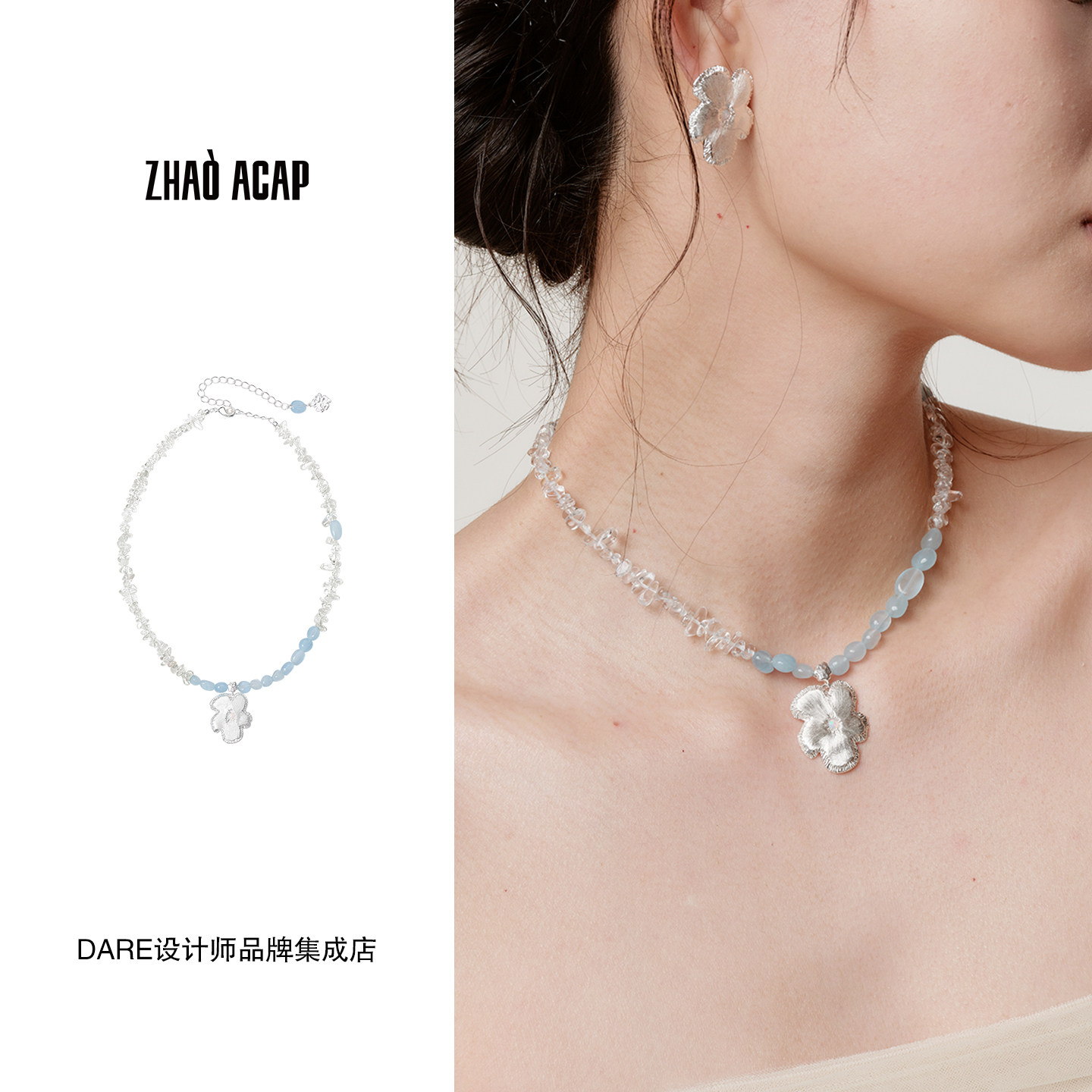 Dare买手店 曌ZHAO ACAP 白水晶拼接海蓝宝长花花锁骨链串珠项链