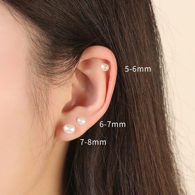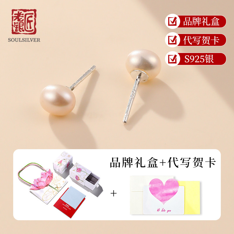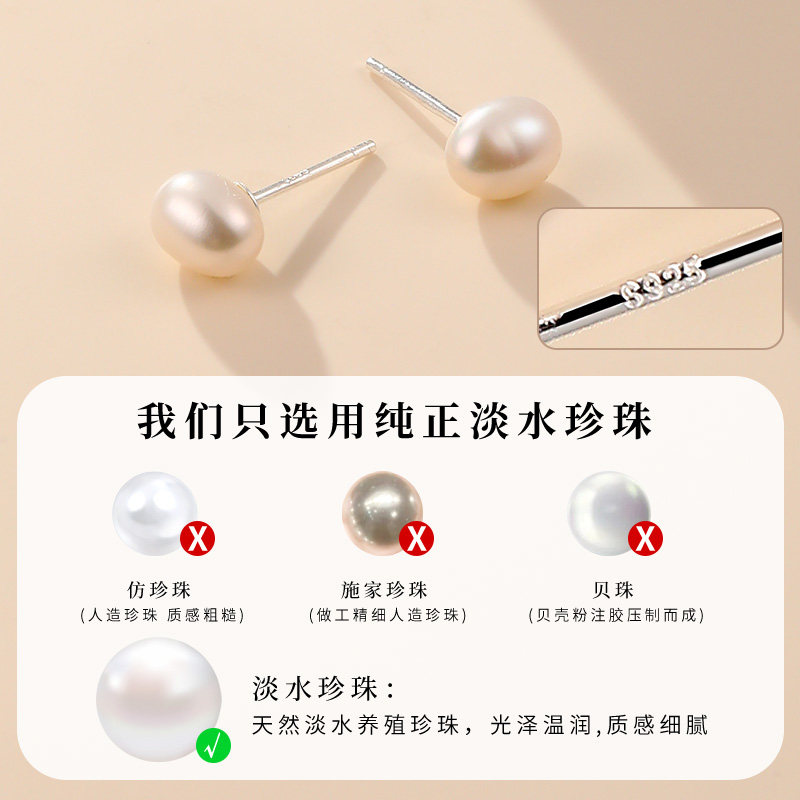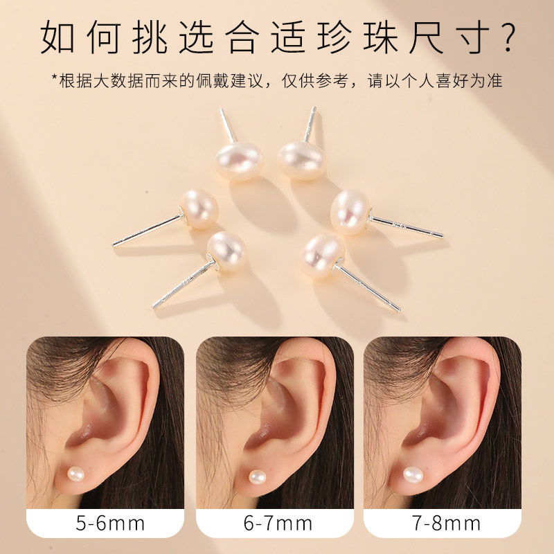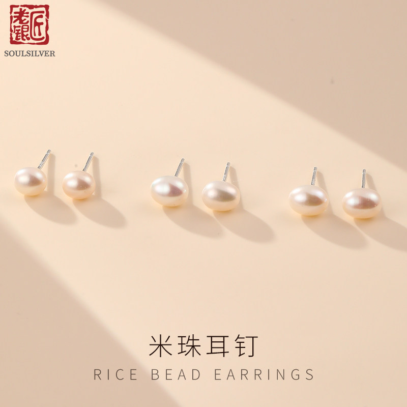 老银匠s925纯银耳钉女小众设计感高级感养耳洞小米珠淡水珍珠耳饰