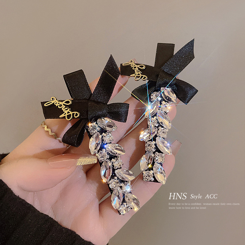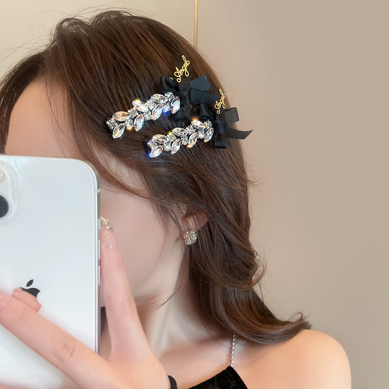 闪钻蝴蝶结织带发夹女侧边刘海夹高级轻奢风发饰2026新款鸭嘴夹