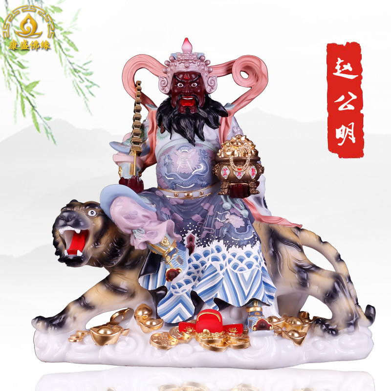 武财神赵公明神像招财汉白玉供奉摆件彩绘镶金赵元帅中路财神爷