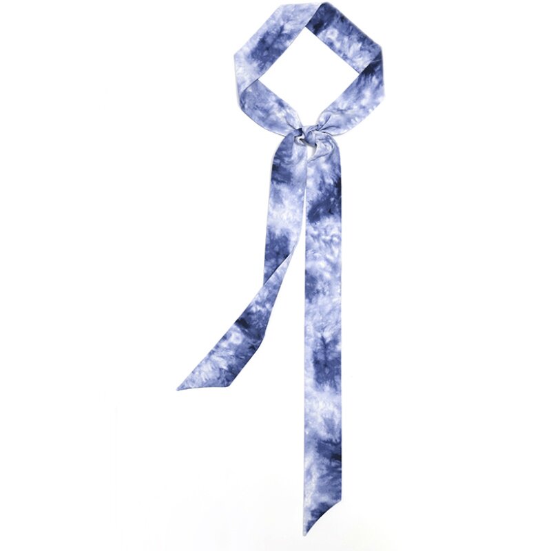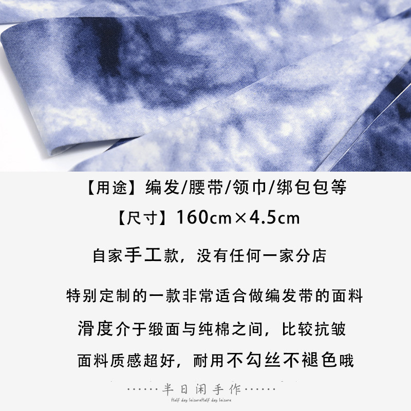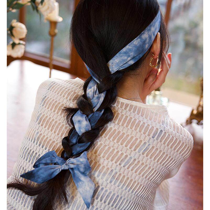 《印染蓝白》蓝色晕染加长发带女扎染印花百搭辫子蝴蝶结波西米亚