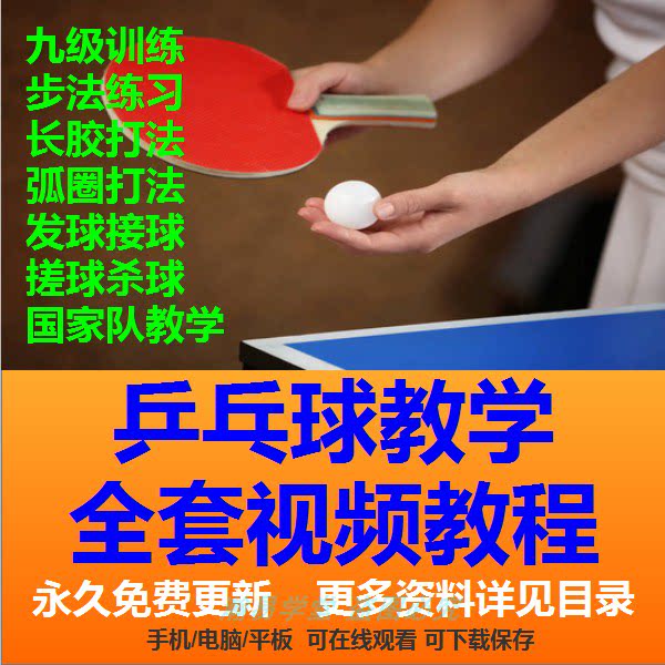 乒乓球教学视频教程九级训练零基础自学入门到精通课程技术方法