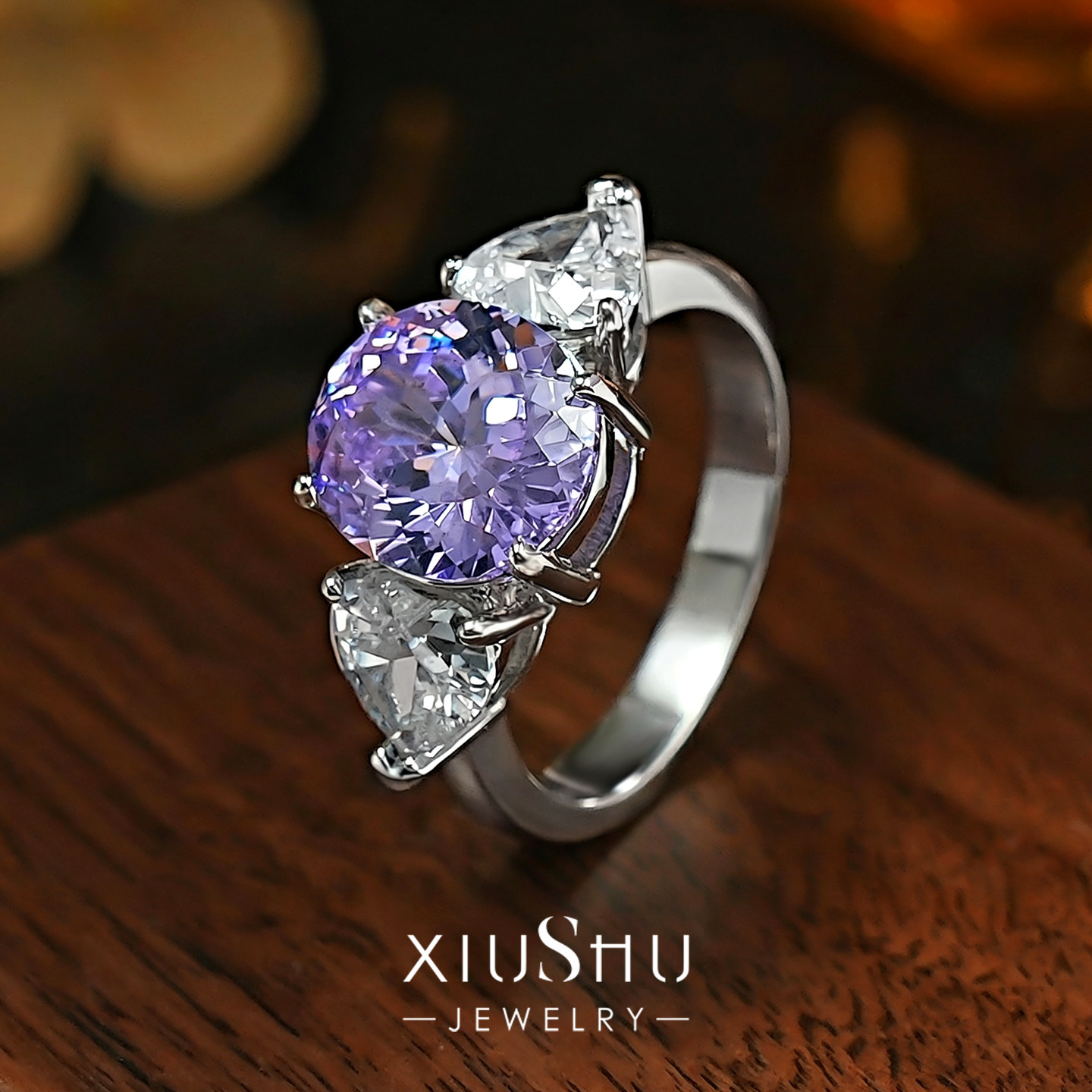 定制款薰衣草紫钻色三石款戒指小众不撞款个性高级感食指戒新款