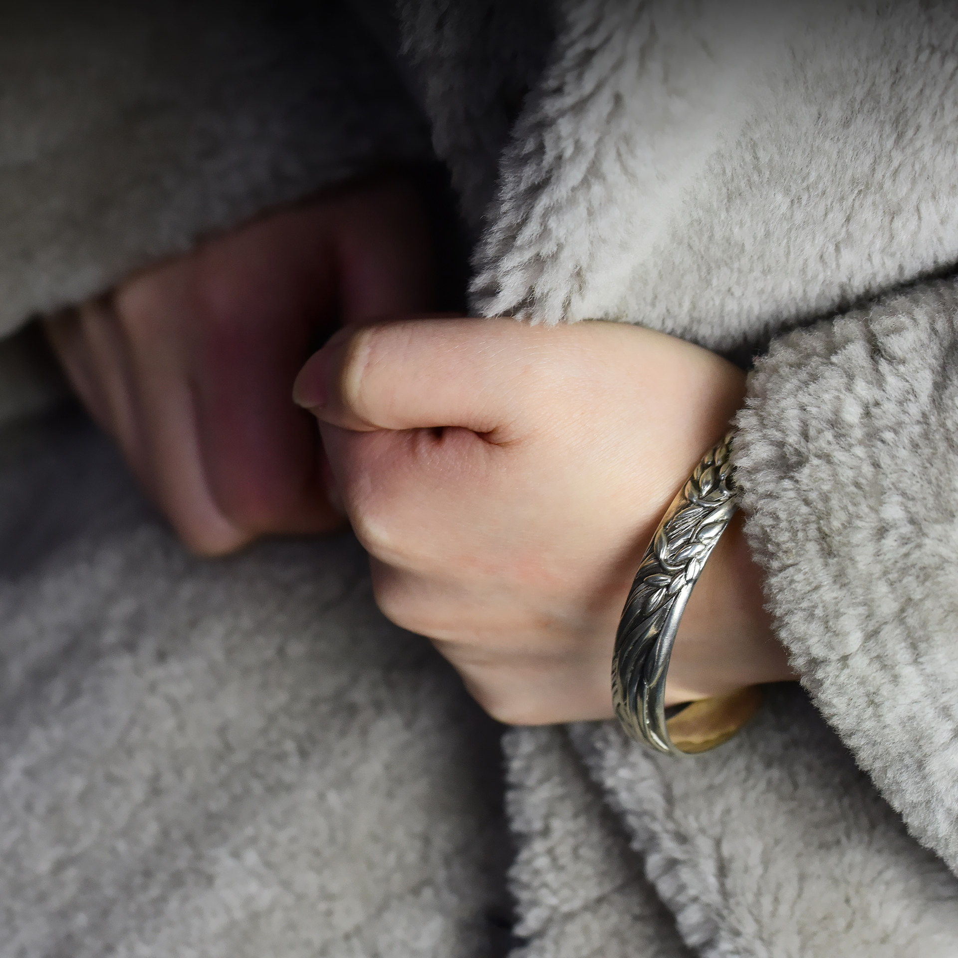 《五谷丰登》九九倾城原创/传统浮雕手工银手镯/国风纯银手镯银饰
